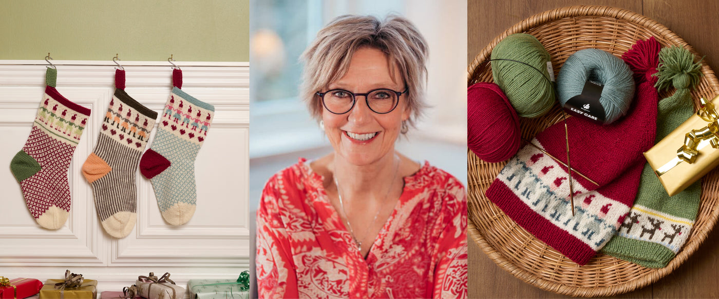 Lisbeth Fabian udvikler designs med inspiration fra hønsestrik - bl.a. julesokker og nissehuer. Mønstrene og brugen af forskellige farver giver hvert design sit helt udtryk.