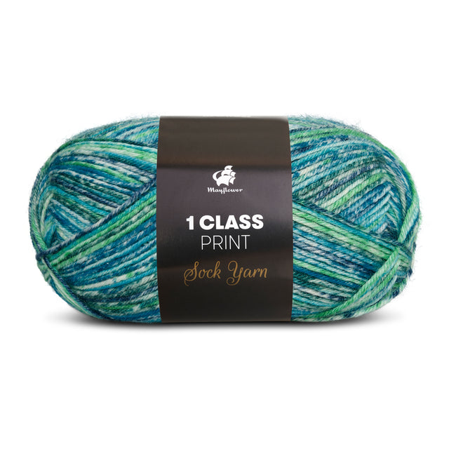 Mayflower 1 Class Print är en färgstark variant av vårt klassiska sockgarn Mayflower 1 Class. De noggrant sammansatta nyanserna skapar vackra, livfulla mönster medan du stickar.
