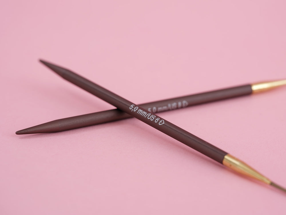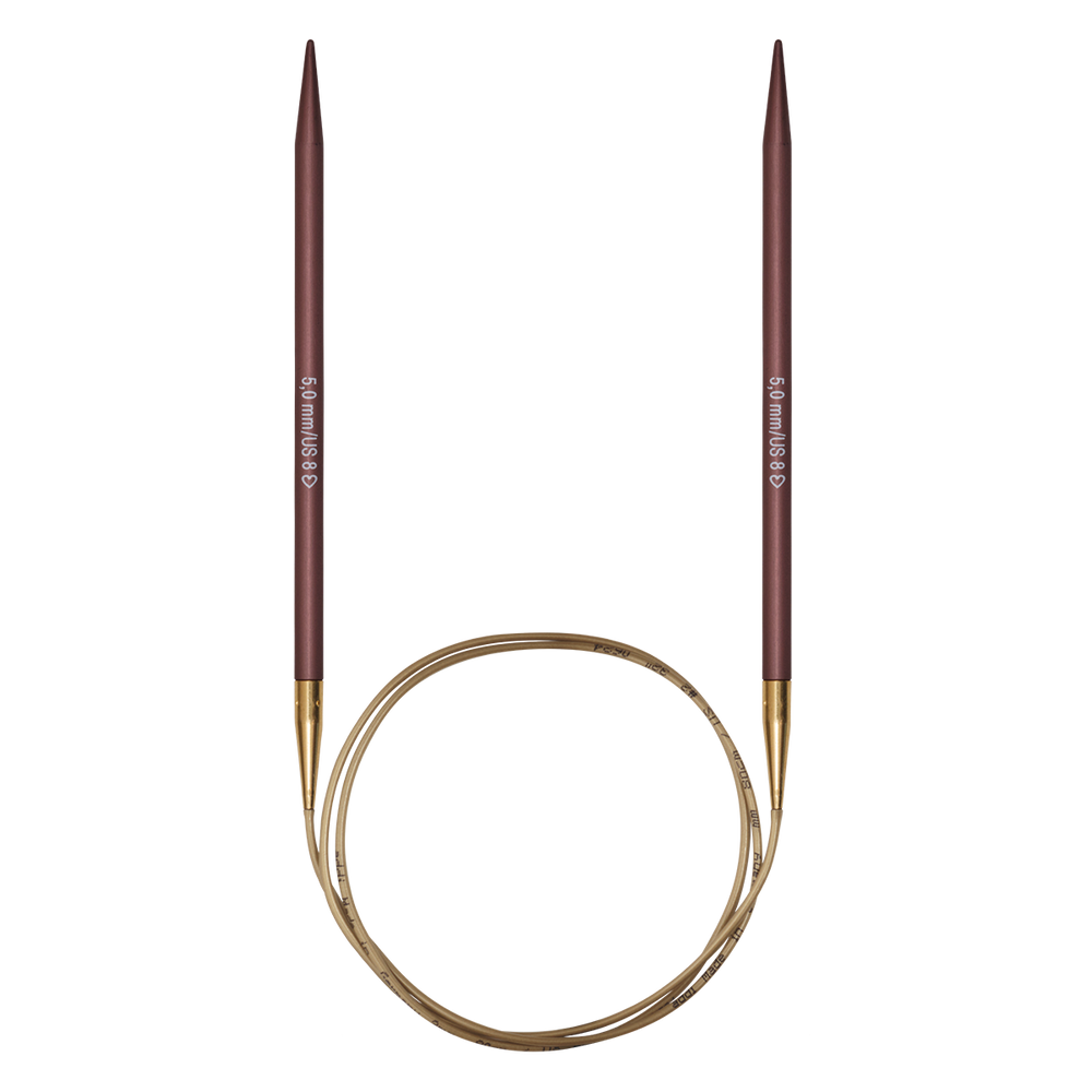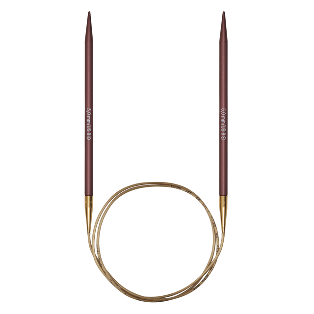 Fasta rundstickor i hållbar aluminium från serien Mystic Lace av ADDI. Finns i storlekar 2,00–8,00 mm med kabellängd på 60 eller 80 cm.