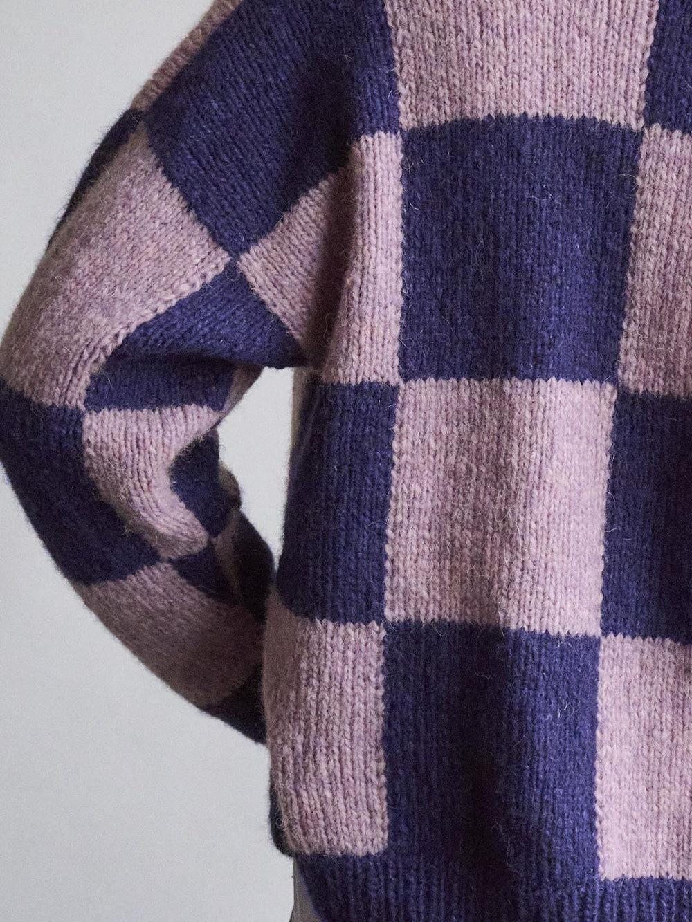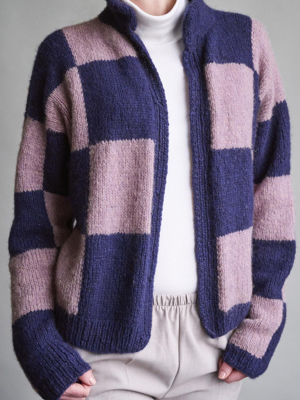 Agnes Cardigan har en cool design med stora rutor, knappar och en hög krage. Koftan är stickad i ett härligt och varmt material, vilket också gör den lämplig som jacka under övergångsperioden.