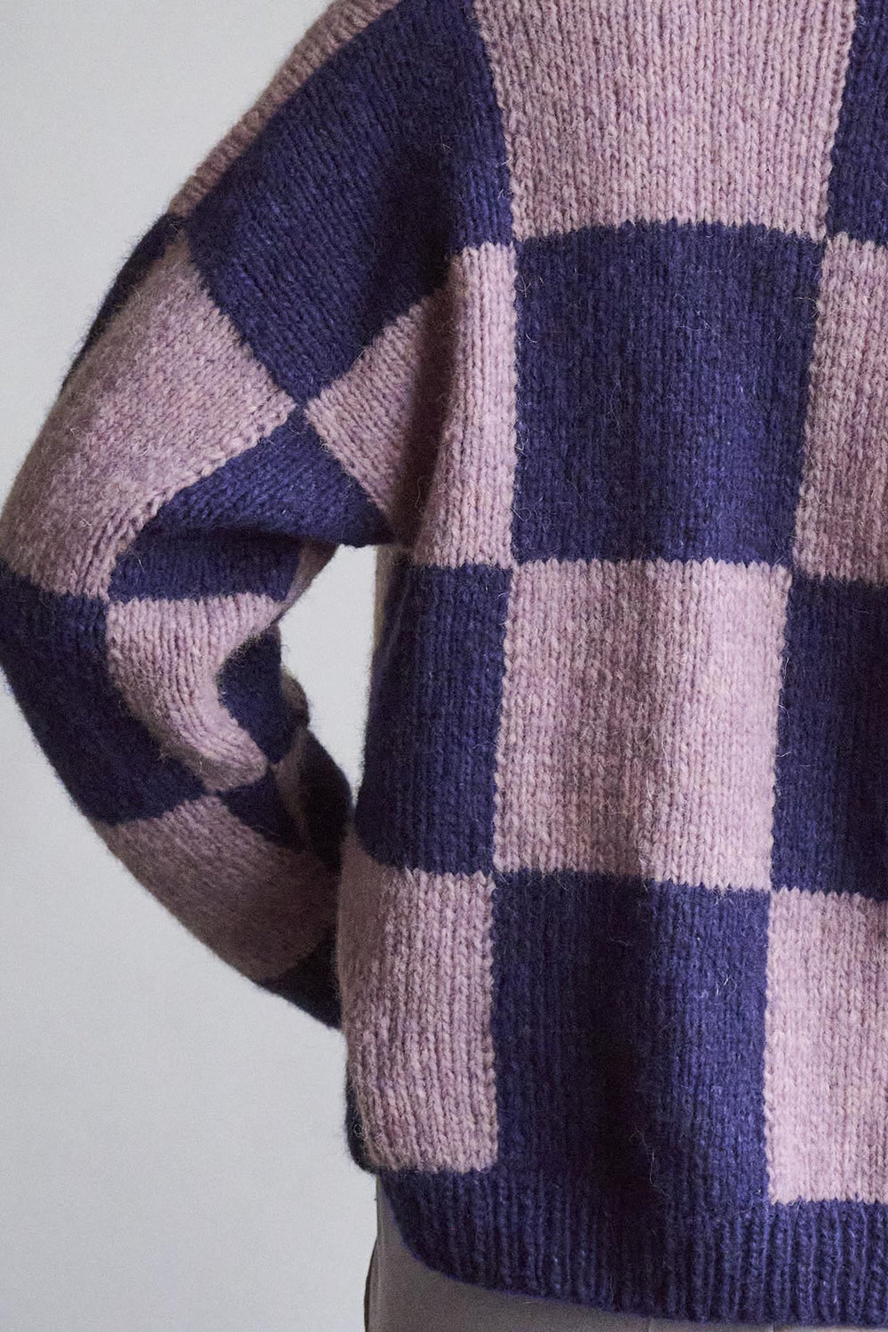 Agnes Cardigan har en cool design med stora rutor, knappar och en hög krage. Koftan är stickad i ett härligt och varmt material, vilket också gör den lämplig som jacka under övergångsperioden.