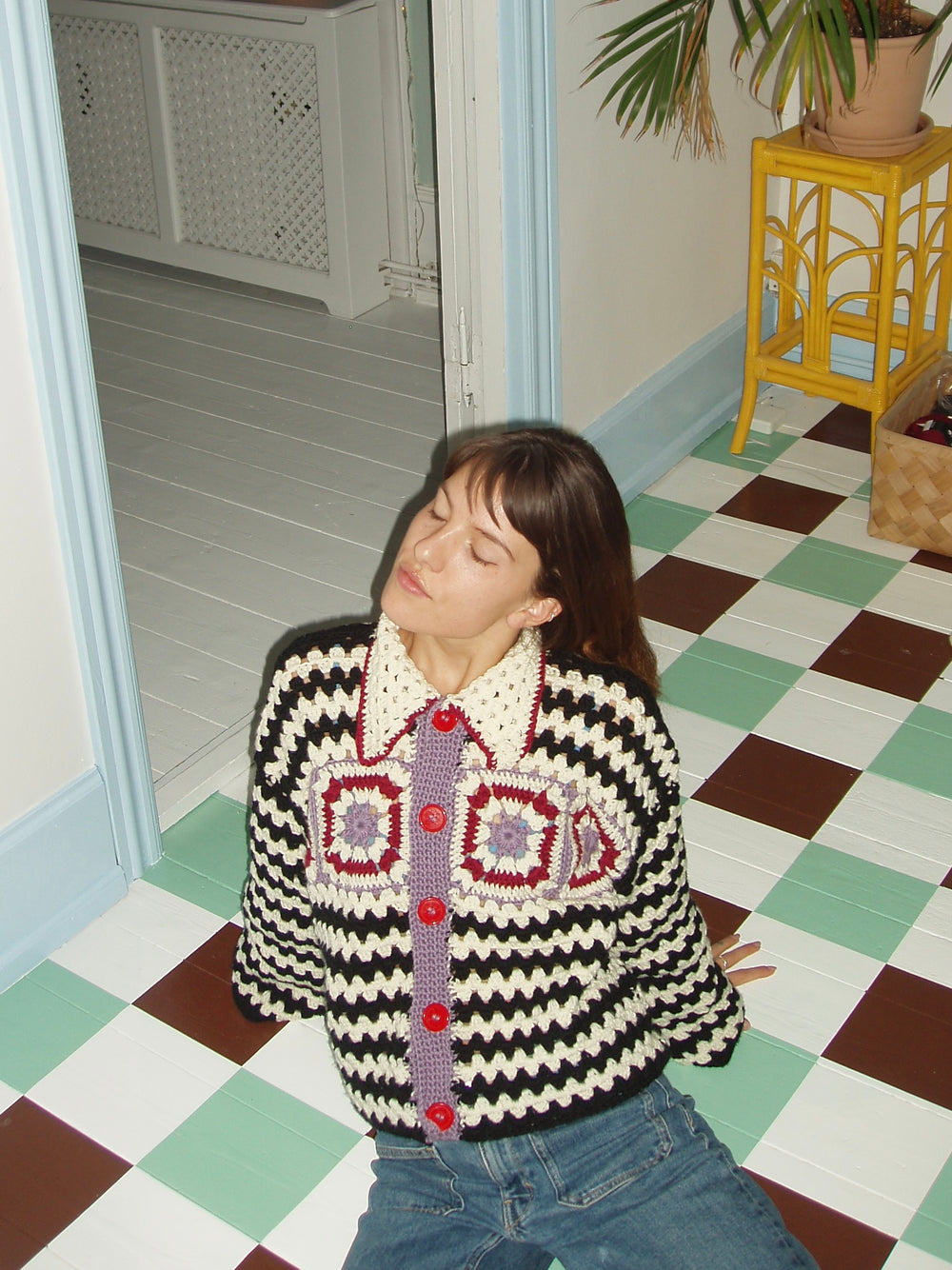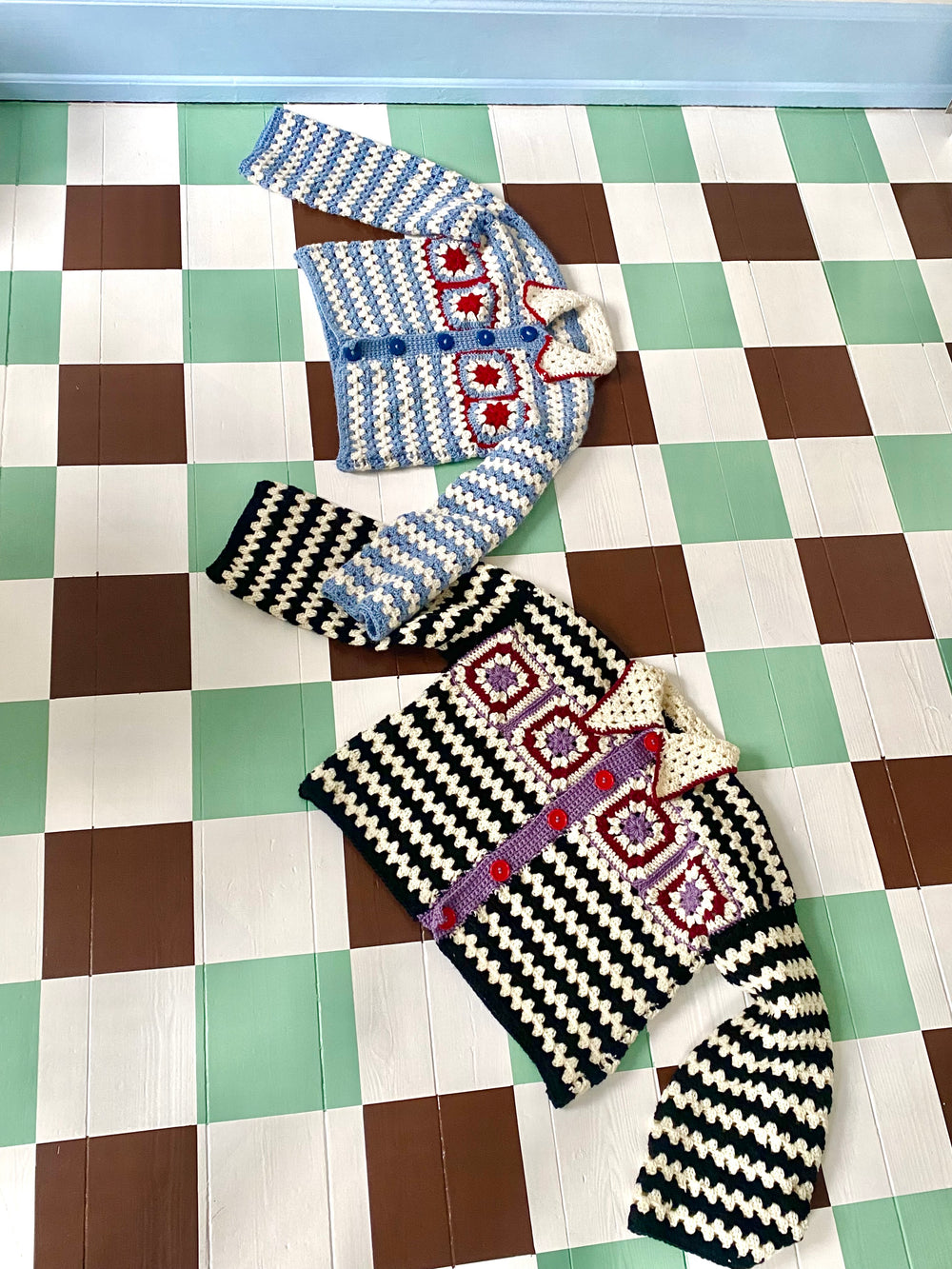Den virkas med den klassiska "mormorsrutan" som är enkel och snabb att virka men också ger ett spännande och snyggt retro-uttryck. Cardiganen avslutas med en fin krage och stora, härliga knappar. Retro och nutid i fin kombination!