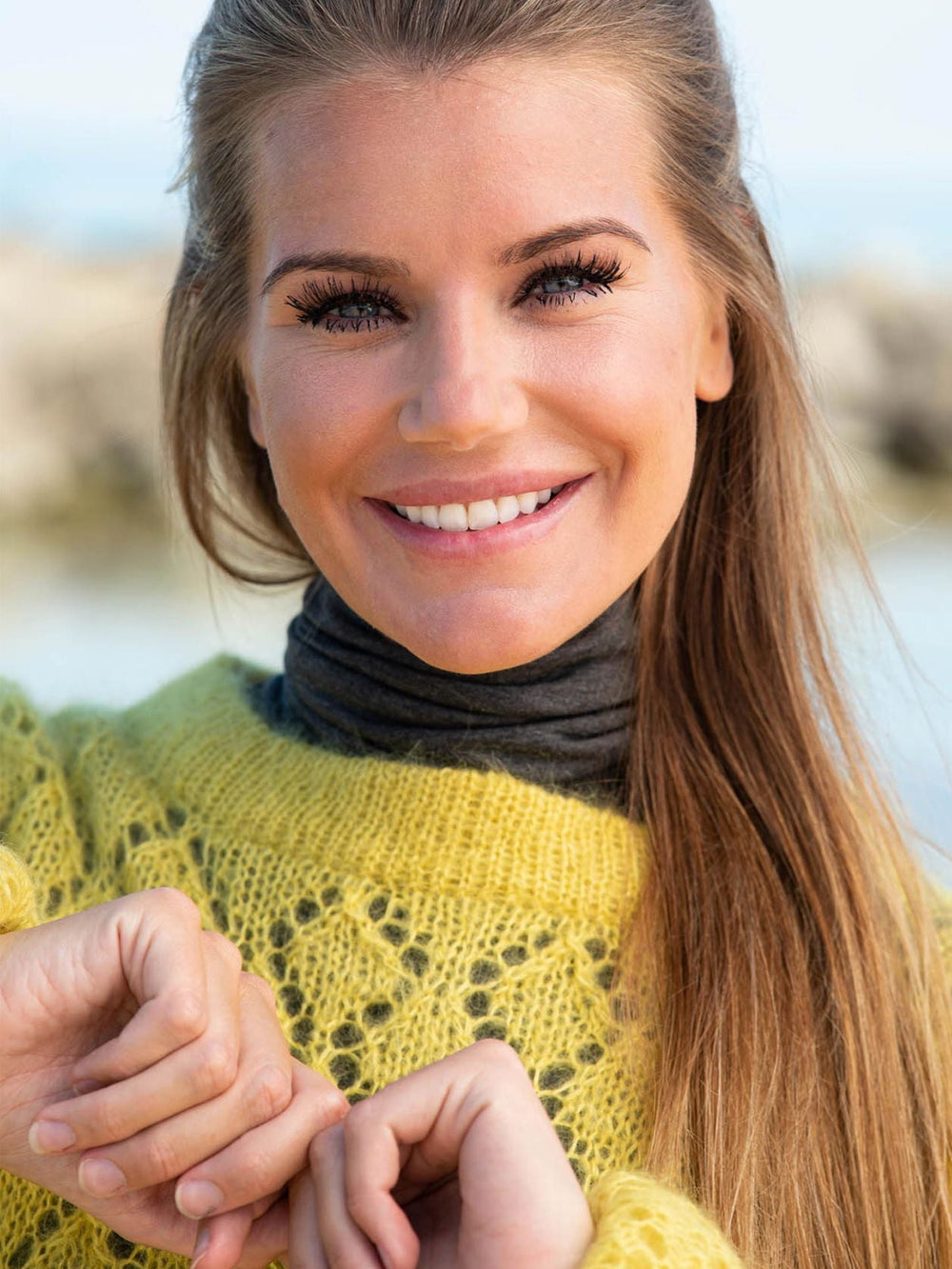 Pia-toppen stickas med två trådar av det ljuvliga Mayflower Super Kid Silk, vilket ger ett mjukt och fluffigt resultat med fin fyllighet.