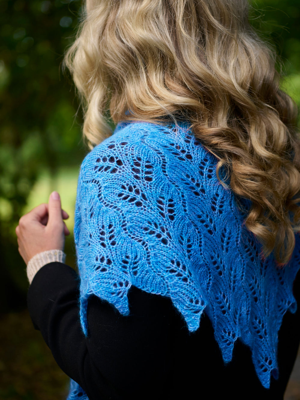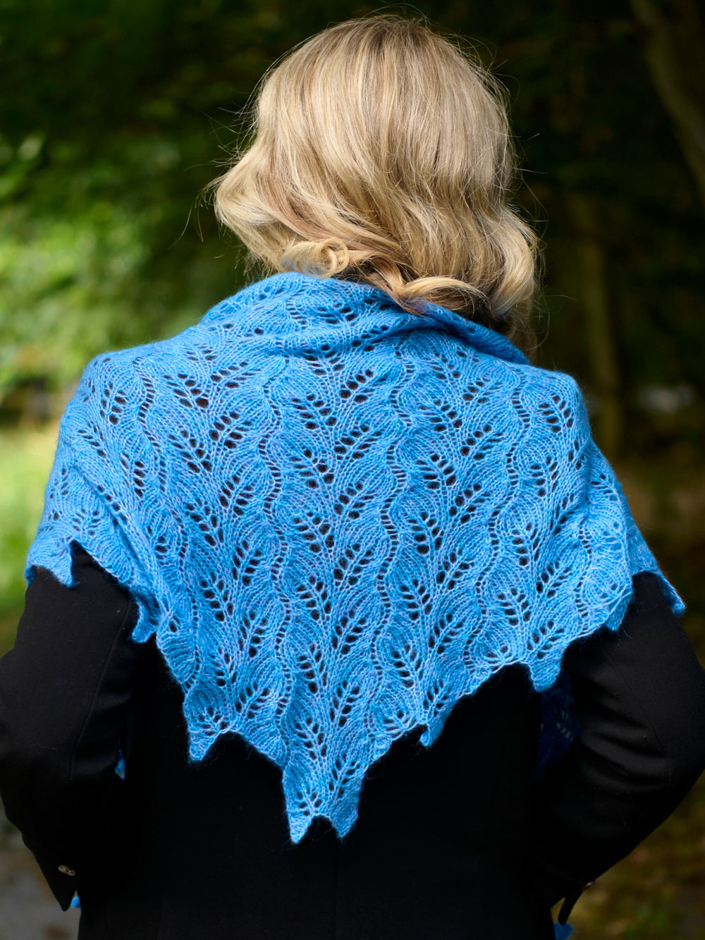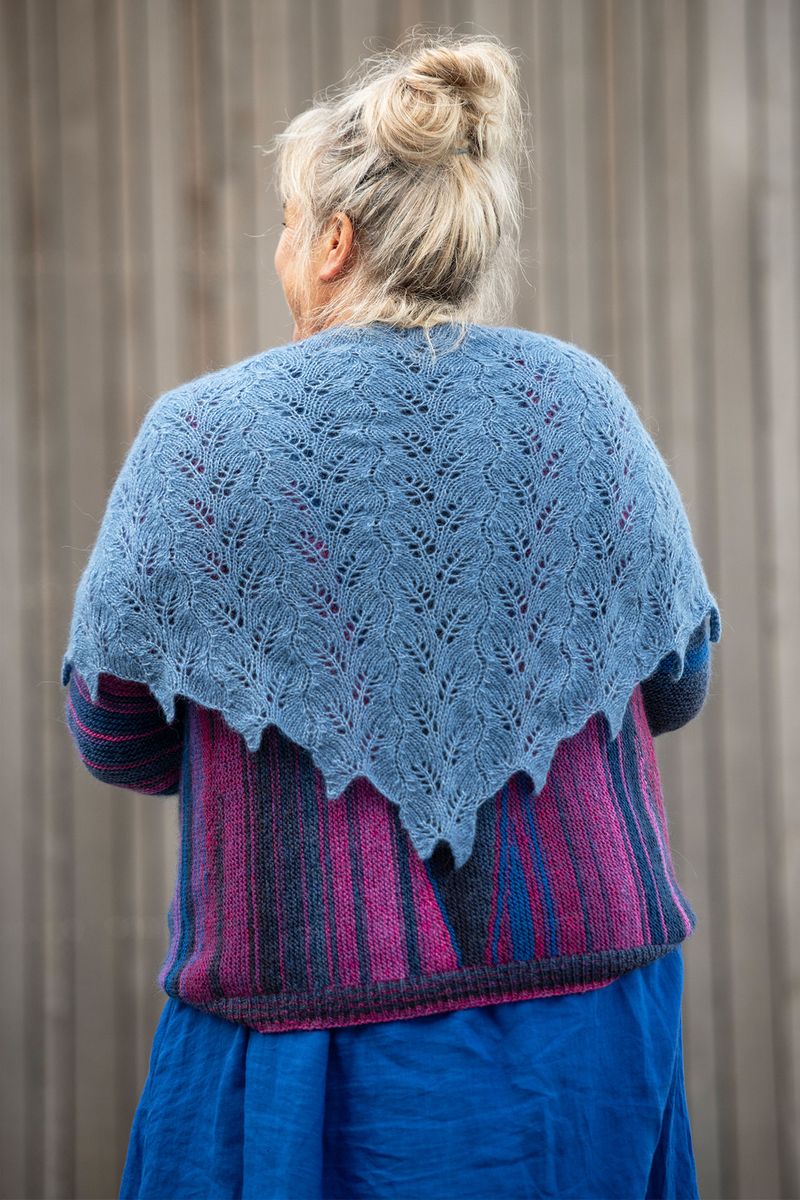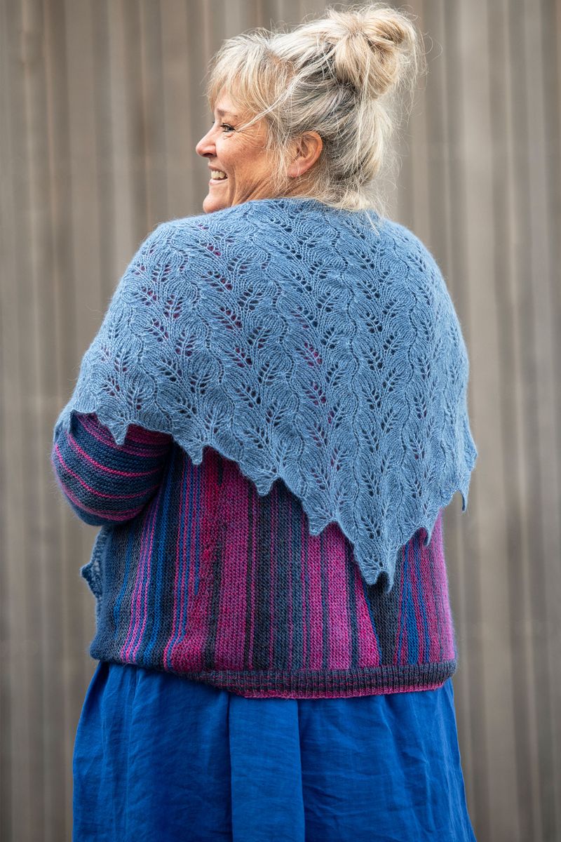 Ormbunkssjalen är ursprungligen stickad i Mayflower New Sky Light, och du hittar mönstret här.