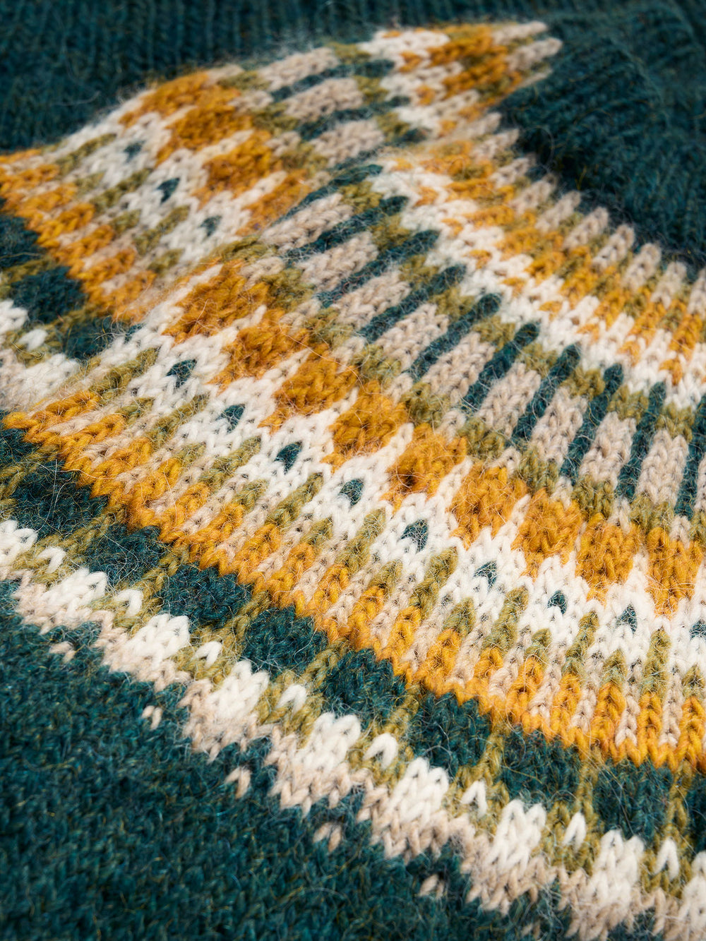Tröjan är stickad i Mayflower Taormina Shade – en härligt mjuk och varm alpackablandning med lätt struktur. Garnet gör tröjan mindre tjock men ändå varm och väldigt skön att bära året runt.