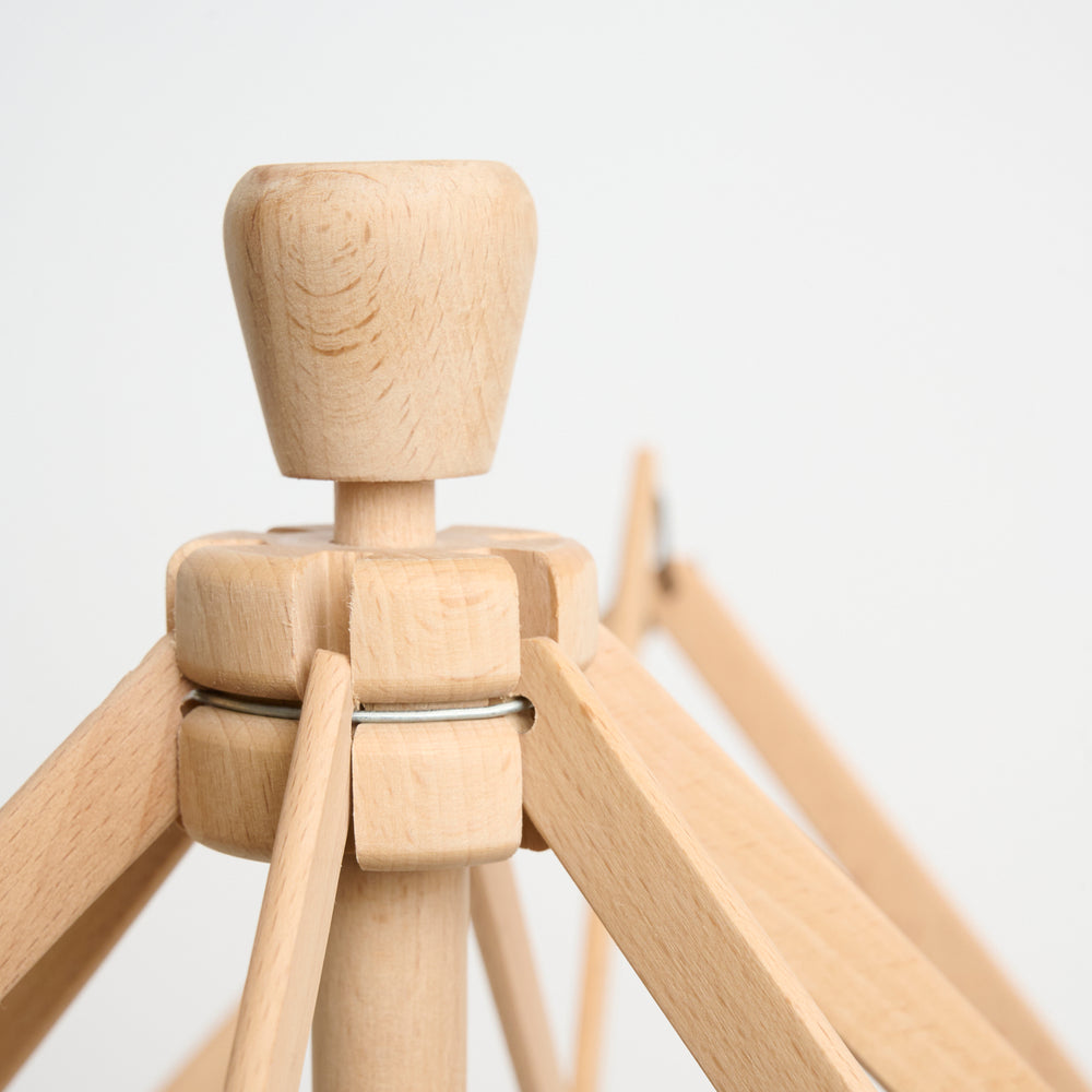 En garnvinda från Mayflower Create som används för att spänna upp en härva garn och göra den redo att nystas till mindre nystan. Garnet fästs runt garnvindan, som sedan kan snurras medan du nystar för hand eller med hjälp av en nystmaskin som denna.