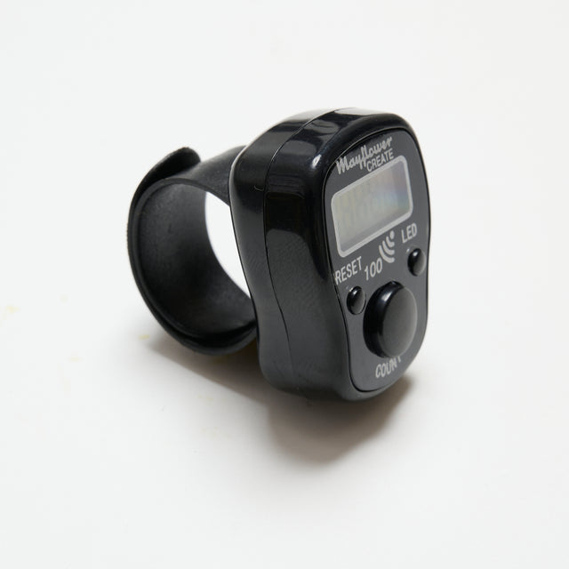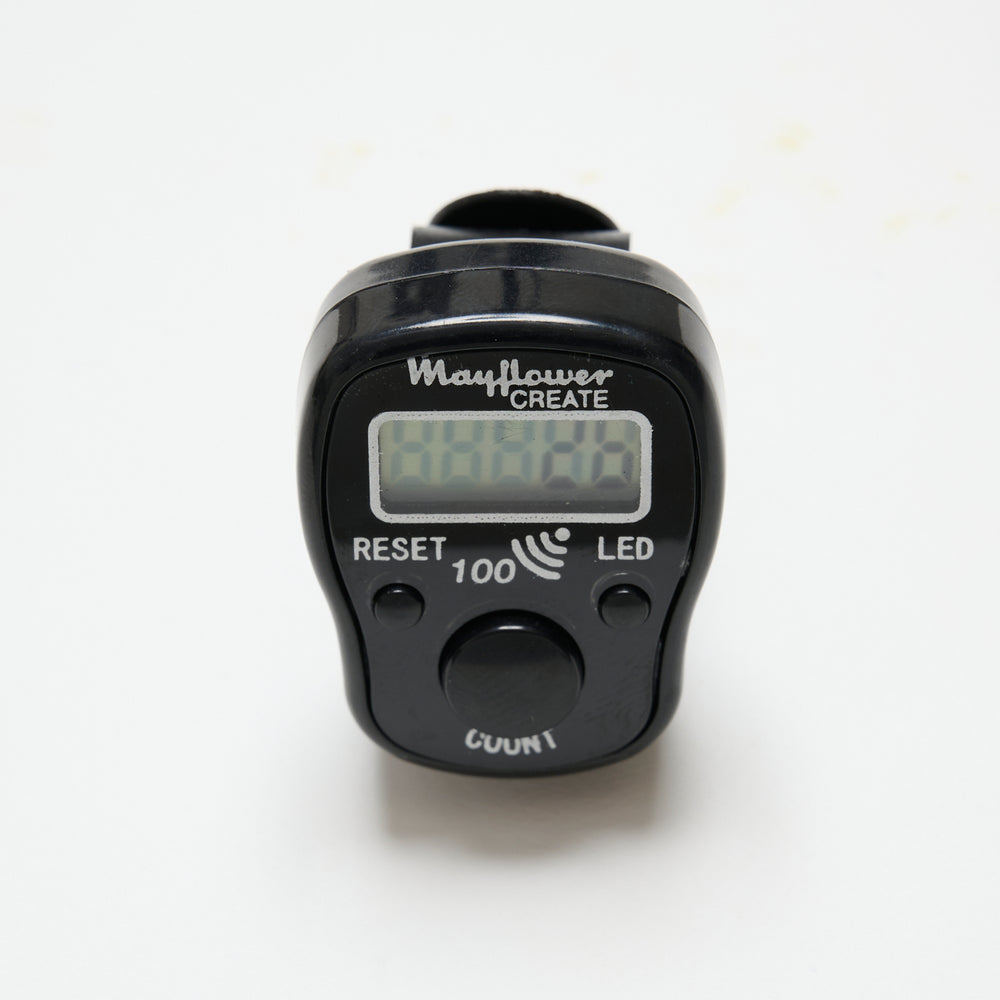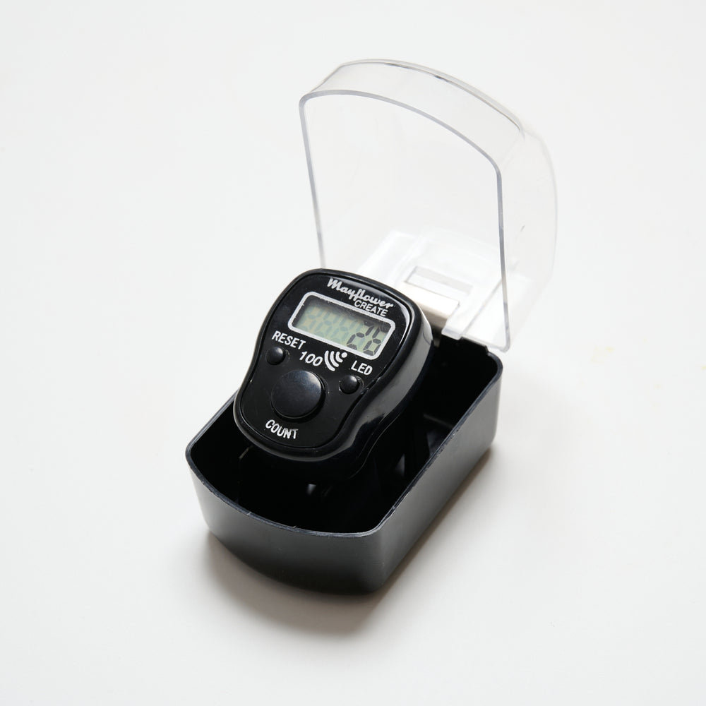 Med Mayflower Create varvräknare får du ett användbart verktyg som gör det mycket lättare att sticka eller virka större projekt. Varvräknaren kan till exempel hjälpa dig att hålla koll på dina rader, maskor eller upprepningar, så att du slipper skriva ner det på papper. Räknaren fästs på ett finger med den justerbara remmen, och med ett enkelt tryck på 'count'-knappen kan du lätt följa ditt stick- eller virkande. Räknaren har LED-ljus som kan tändas under de mörka timmarna och en återställningsknapp när räkningen ska nollställas.