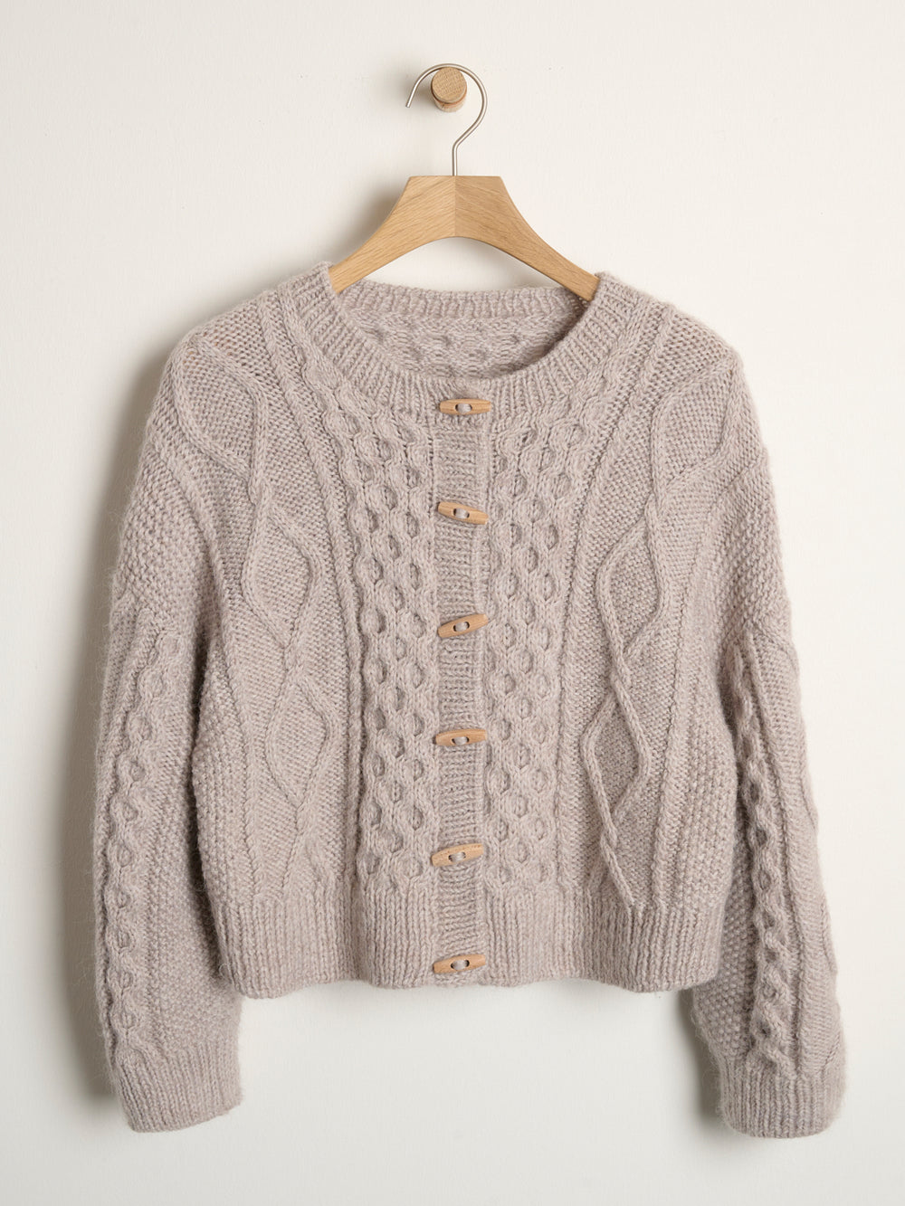 Dagmar Jacket från PetiteKnit är en riktigt härlig och mysig kofta som stickas uppifrån och ner i strukturstickning med olika mönster. Koftan stängs med knappar.