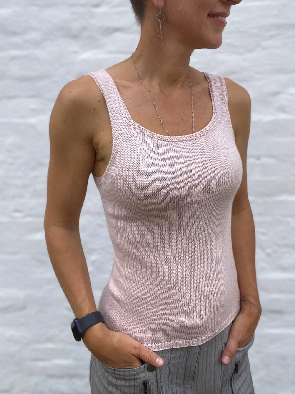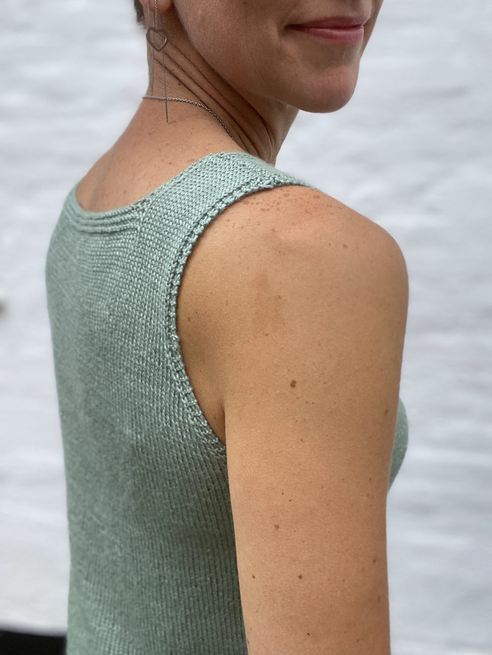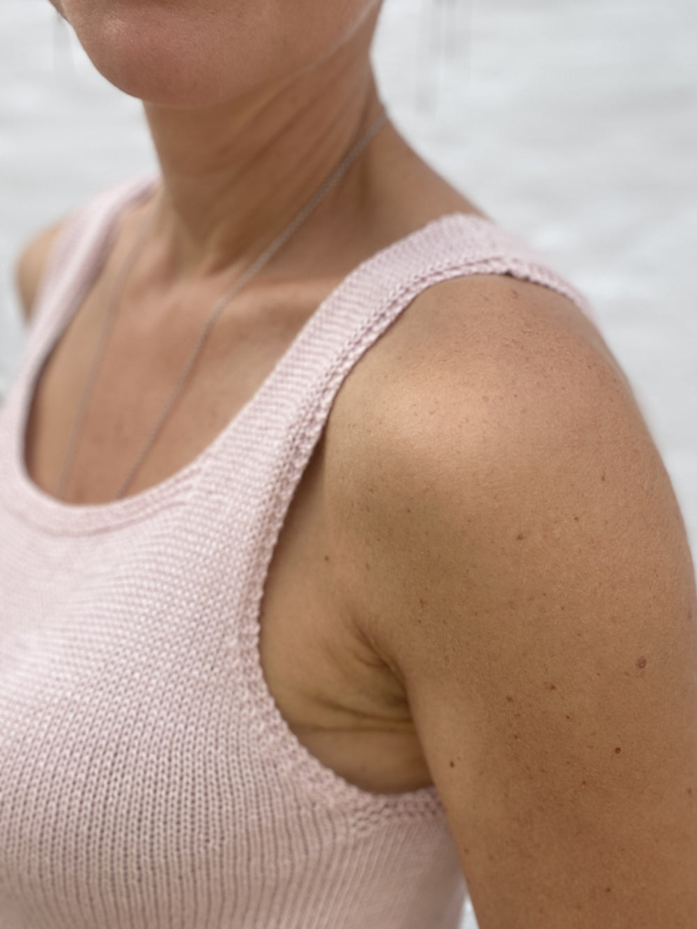 Detta lätta linne är stickat i en mycket enkel design med ett mjukt och lyxigt silkegarn. Linnet får ett florlätt uttryck och är behagligt att bära nära kroppen. Det kan också användas som en sommartopp eftersom PREMIUM Merino Silk har en vacker glans som ger modellen ett fint fall. Storleken bör väljas så att plagget sitter så nära kroppen som möjligt.
