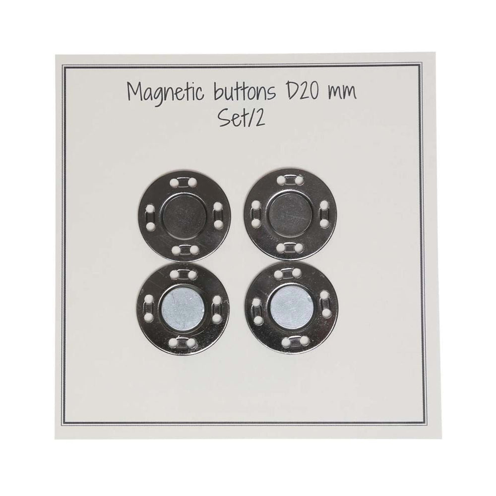 De magnetiska knapparna har en bredd på 20 mm och är grå.