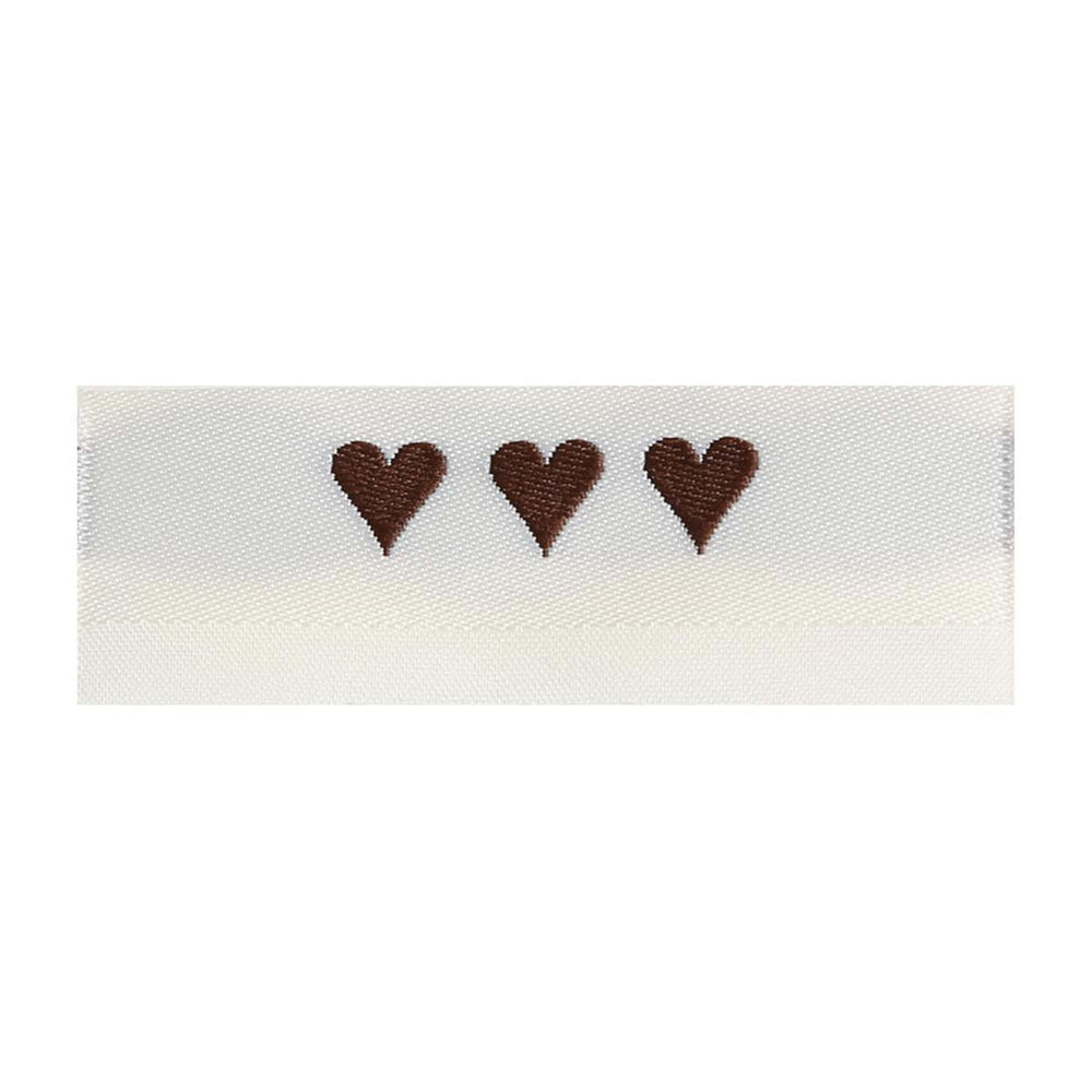 Varje etikett mäter 50 x 11,5 mm. På framsidan finns det "handgjorda" medan det finns 3 hjärtan på baksidan.