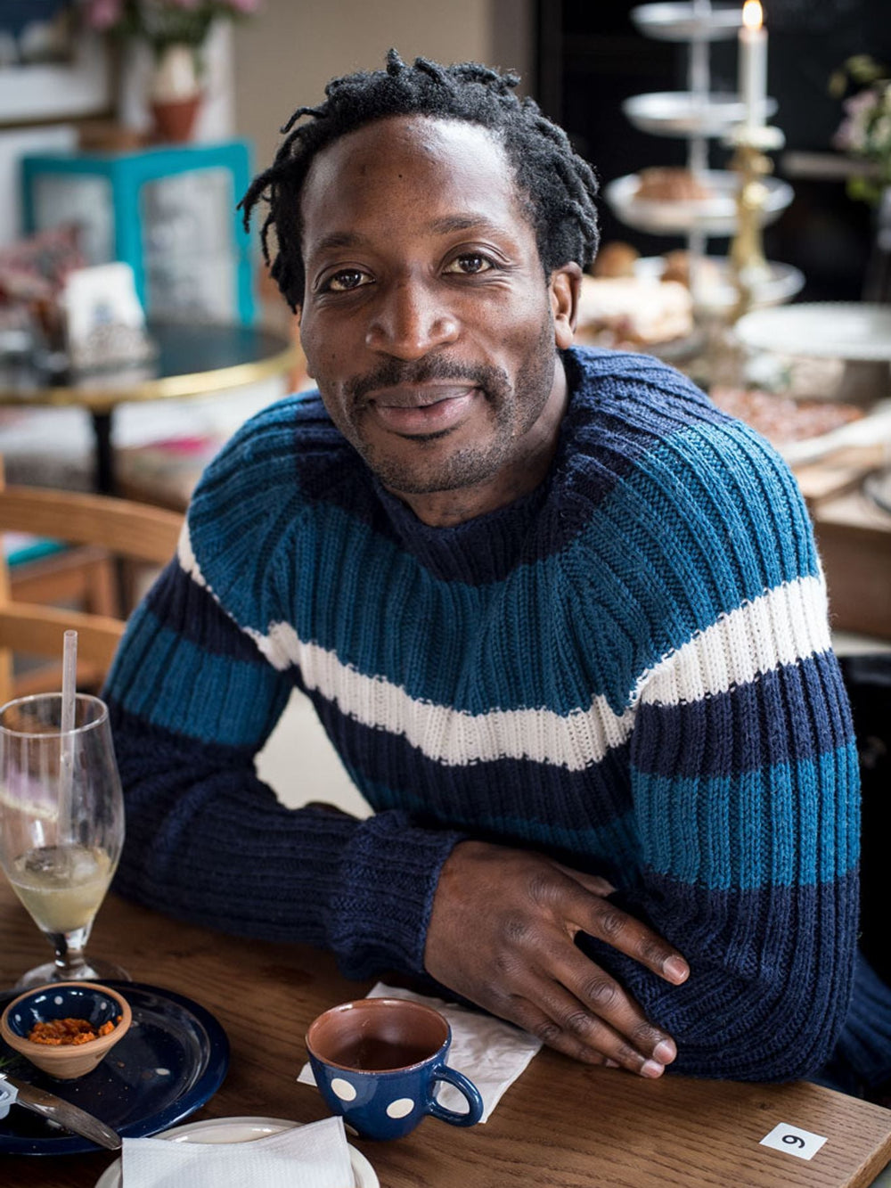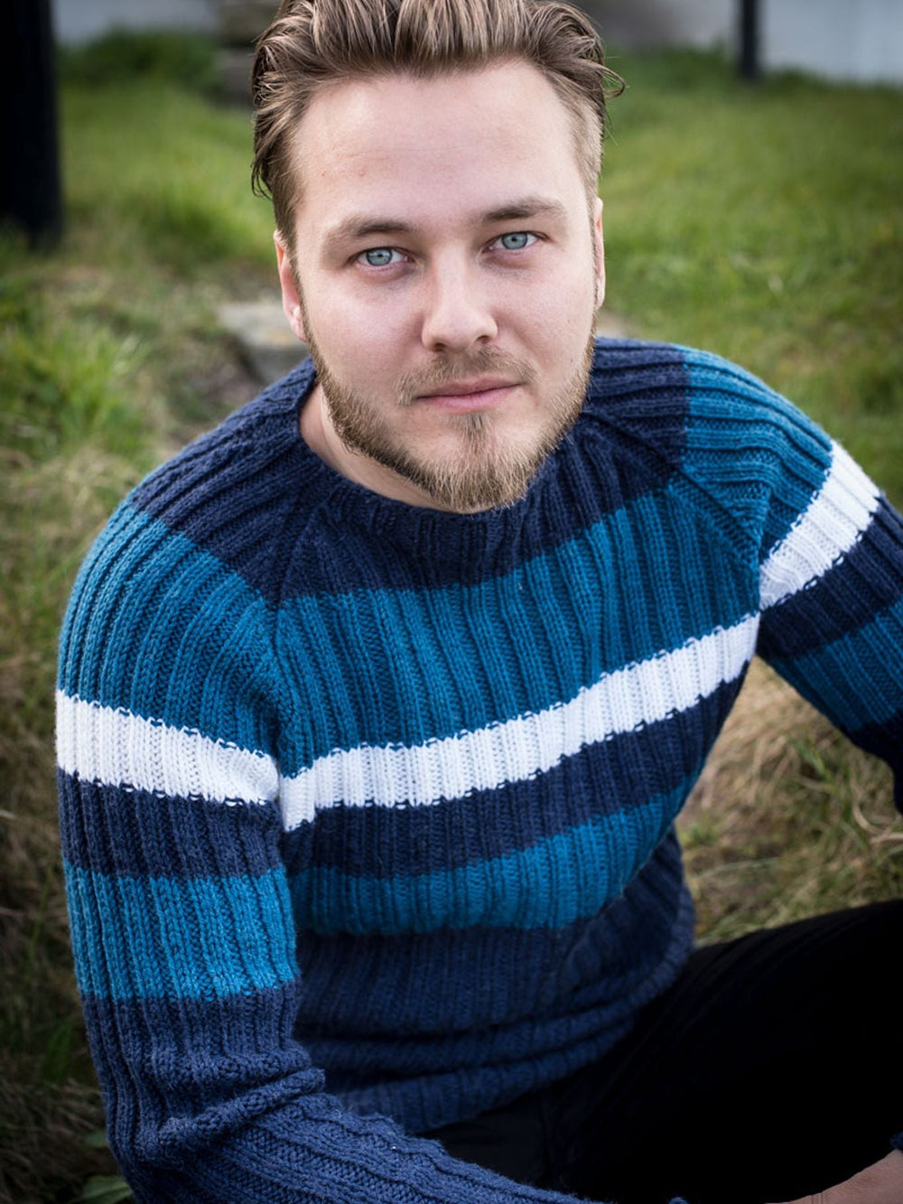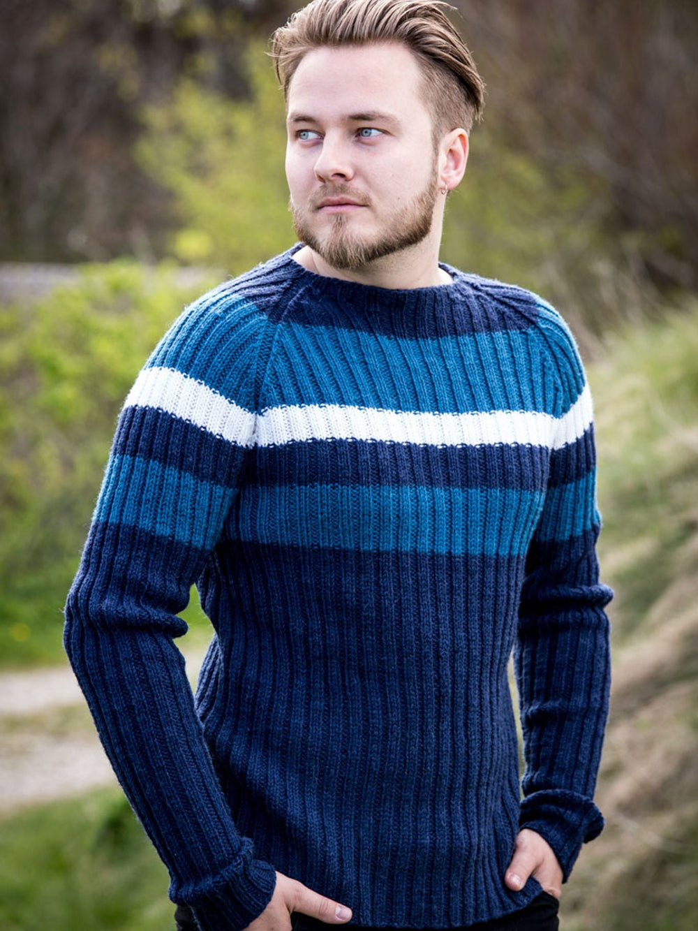 Tröjan är stickad med snygga färgskiftningar i horisontella ränder i varierande tjocklek. Ränderna skapar ett vackert färgspel och blir fin i vilka färger man än väljer!