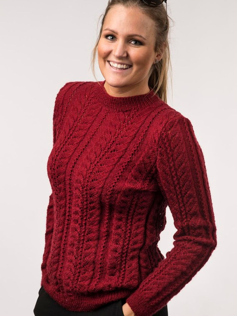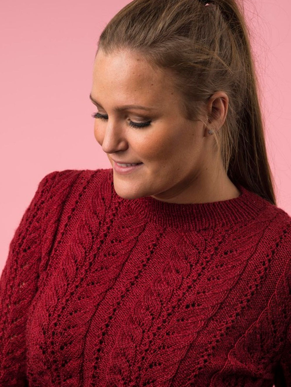 Det finns väldigt få stickade tröjor som har ett ihåligt mönster som är bättre än mönstret för denna tröja. Tröjan är stickad med en rund nacke och det ihåliga mönstret täcker både kropp och ärmar. Ärmarna appliceras, men tröjan är utformad så att det finns ett naturligt flöde mellan bäraren och tröjans ärmar, så det verkar inte oroande att ärmarna är fästa efteråt.