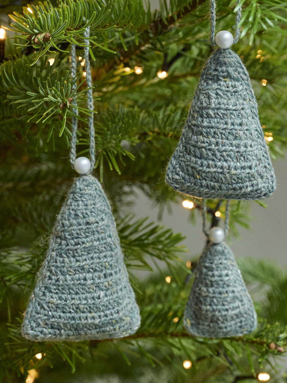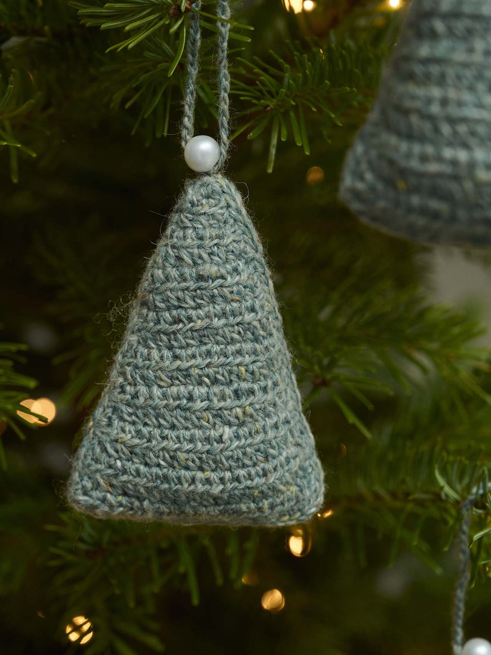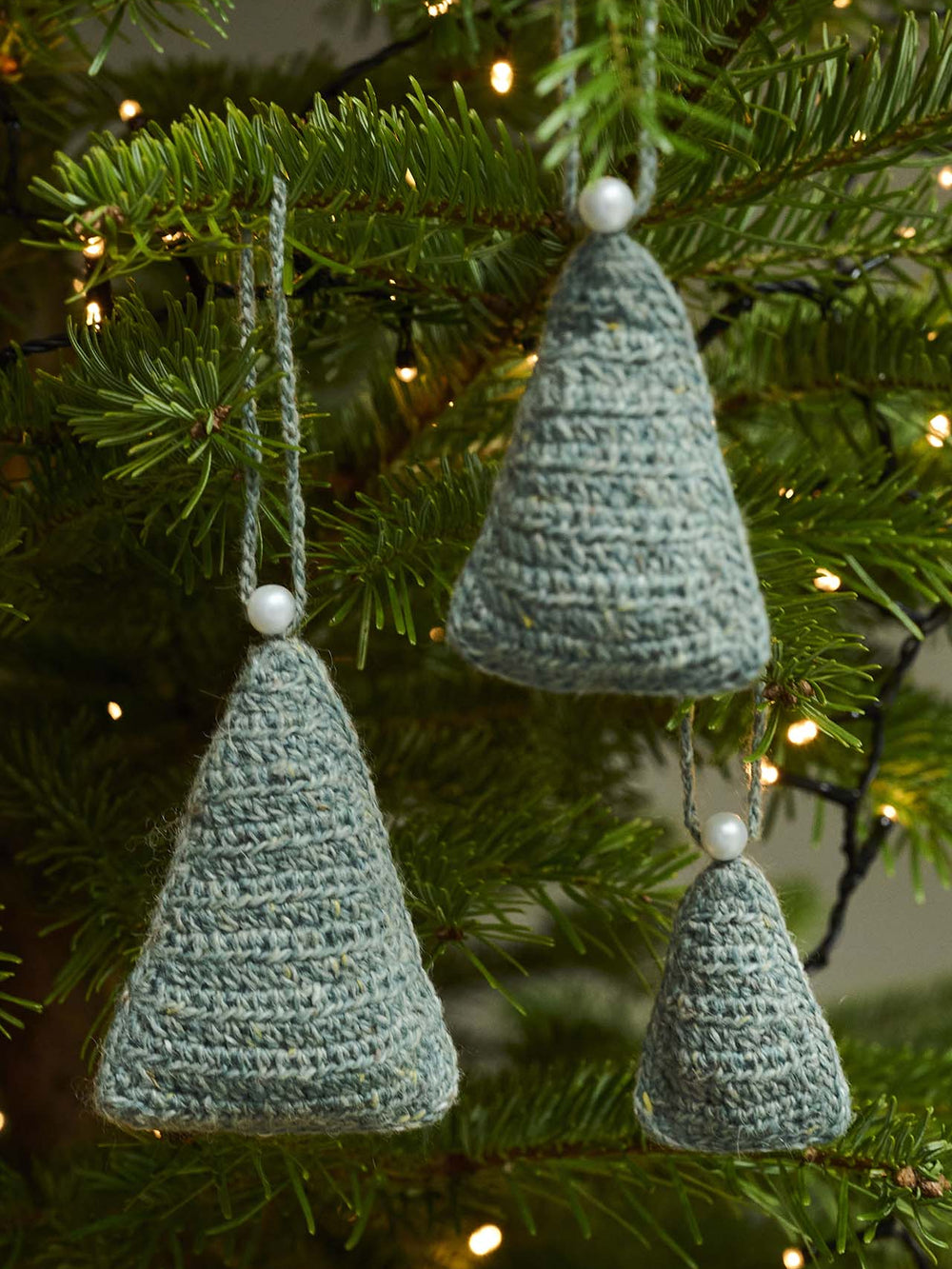 Enkelt virkningsprojekt med julgranar i tre olika storlekar, som monteras med en virkad snodd, så de kan pryda till exempel julgranen. Julgranarna virkas i Mayflower Birmingham, som är ett snyggt tweedgarn, vilket ger julgranarna ett vackert färgspel.