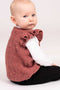 Blomklocka Väst Mini är stickad i mosstickning, en enkel teknik med räta maskor över aviga och aviga maskor över räta, som ger ett fantastiskt resultat. Volangerna görs genom att lägga upp maskor längs ärmkanten och sedan sticka vändstickning. I nacken sys en liten knapp fast för att underlätta av- och påtagning.