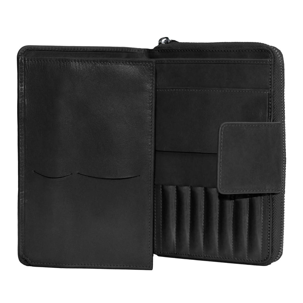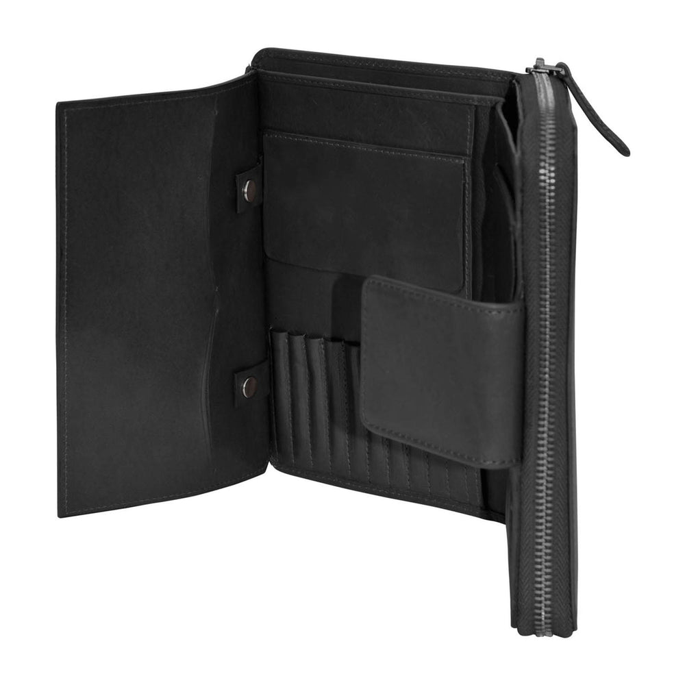 Den andra sektionen fungerar som en plånbok med utrymme för kort och mynt. En praktisk dragkedjeficka kan användas för små föremål, exempelvis maskmarkörer eller sticktillbehör.