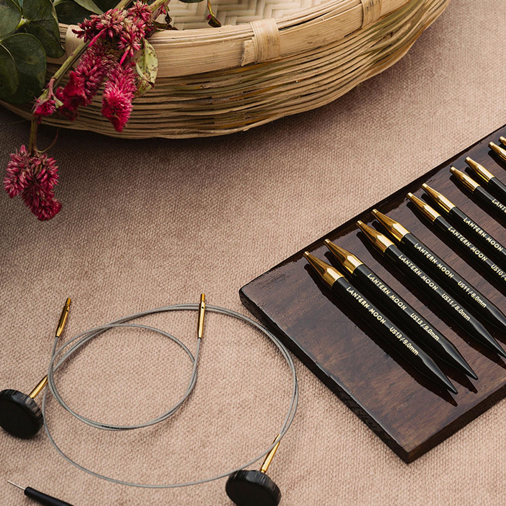 De utbytbara rundstickorna från Lantern Moon är tillverkade av det unika ebenholtsträet, som är en av de mest värdefulla träsorterna i världen. Träet kommer från statligt auktoriserade lager och säljs enligt lokala och internationella lagar. Ebenholtsträet är ett mycket starkt material, vilket gör stickorna väldigt solida och hållbara och de kan hålla i många år. Träet känns varmt i händerna, vilket gör de utbytbara rundstickorna bekväma att sticka med – även under flera timmars arbete. Dessutom är träet mycket lätt, vilket gör stickorna ännu trevligare att arbeta med. Stickornas yta är helt slät och mjuk, vilket får ditt garn att glida smidigt över dem. Med de utbytbara rundstickorna från Lantern Moon får du med andra ord en härlig stickupplevelse, och de kan användas med alla typer av garn och tjocklekar.