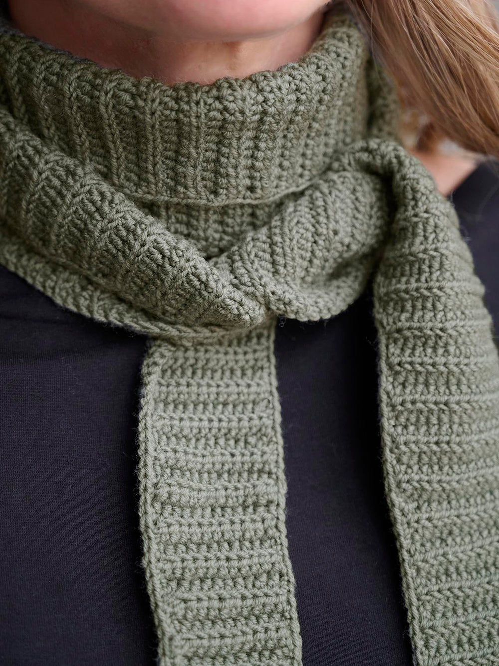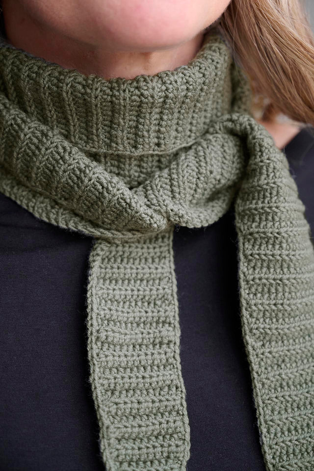 Den långa, smala Luxury-scarfen är underbar att bära, både inomhus och utomhus. Den är virkad i varm ull och passar därför perfekt för kyliga dagar utomhus. Tack vare sin nätta storlek kan du även använda den inomhus utan att den känns klumpig.