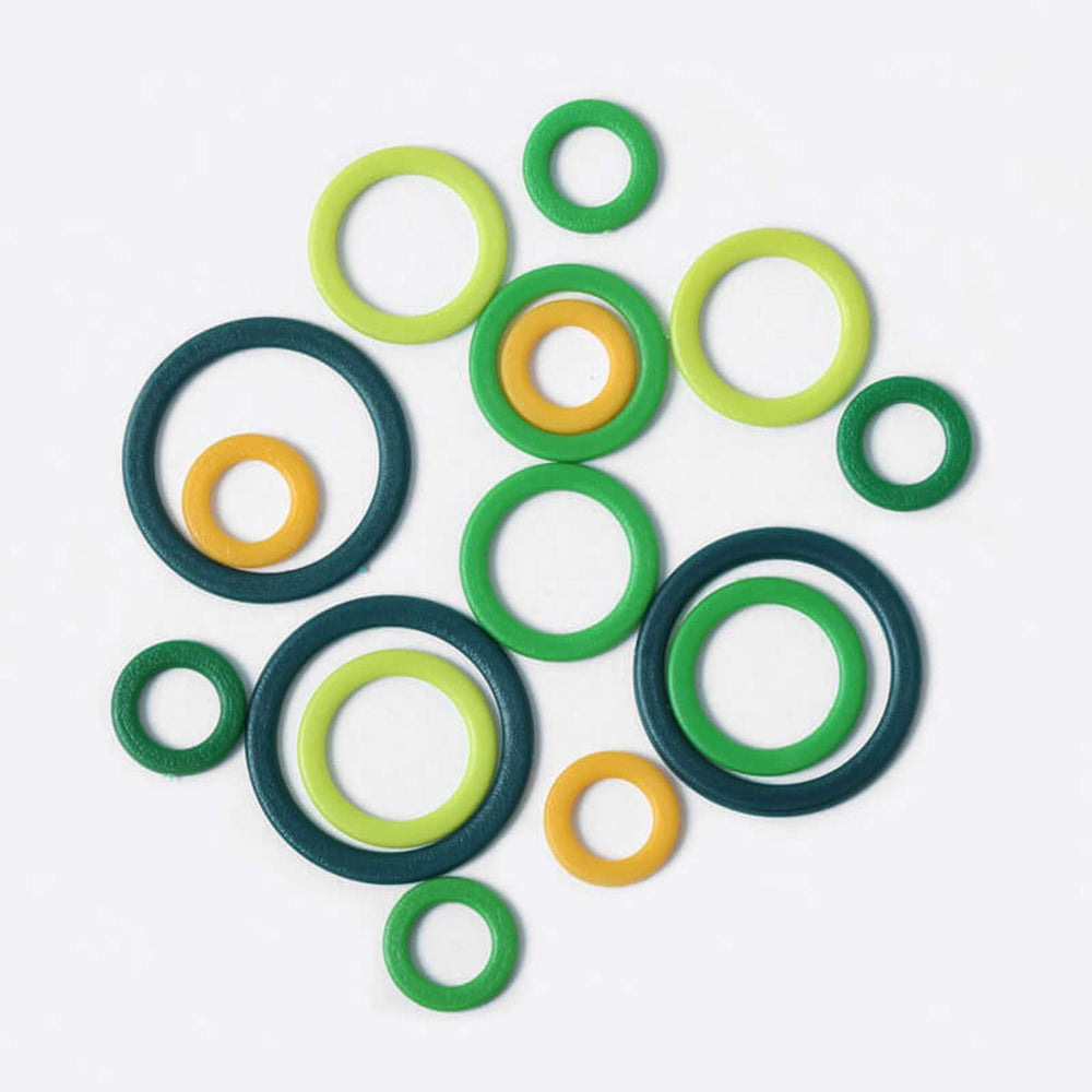 Maskmarkörerna är formade som ringar och vi väger inte något eftersom de är gjorda av plast och därför verkar inte störande när vi stickar eller virkar. De kan enkelt placeras på vägen när du kommer till plats i arbetet där ett märke kan göras. Maskmarkörerna finns i 3 olika storlekar och passar därför både tunna och tjocka pinnar.