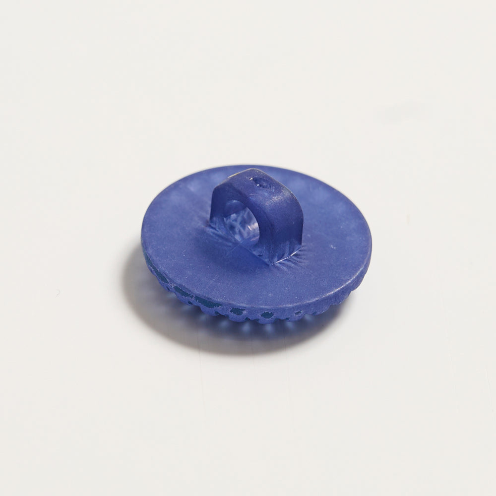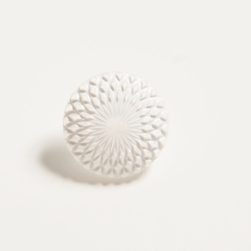 En fin knap med blomstermønster, som fås i blå, hvid og sort i 13mm og 15mm med 8 stk. i en pakke.