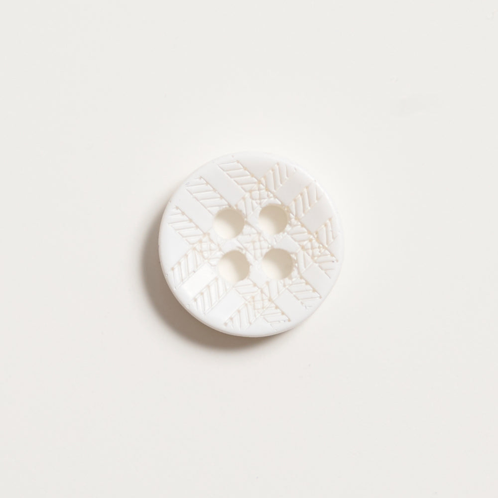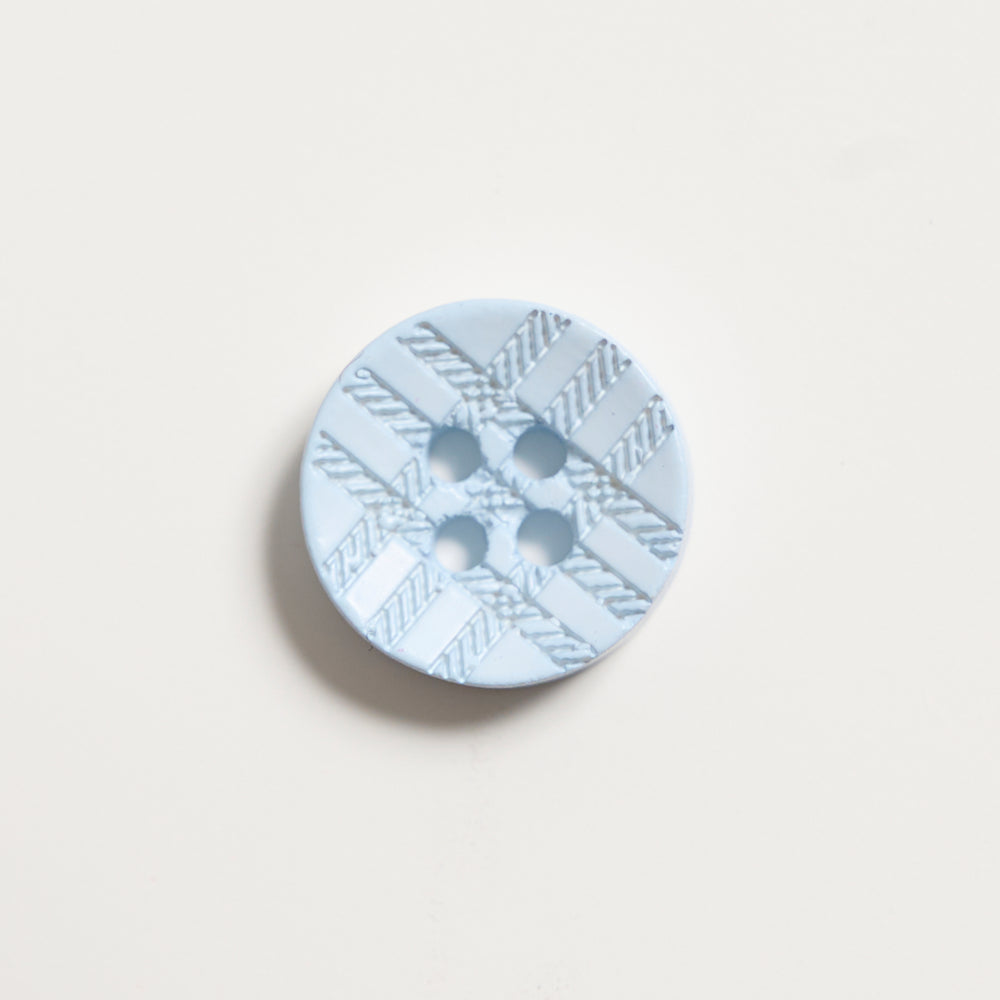 Mayflower Create knapper med fire huller i fire forskellige pastelfarver i en holdbar kvalitet. Den har et ternet mønster, der er præget ind i knappen. Mål: 11 mm. Antal: 8 stk.