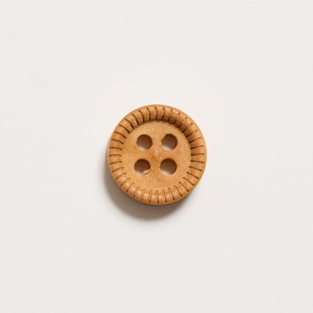 Enkel træknap med fin detalje i kanten og fire huller. Mål: 11mm. Antal: 8 stk.