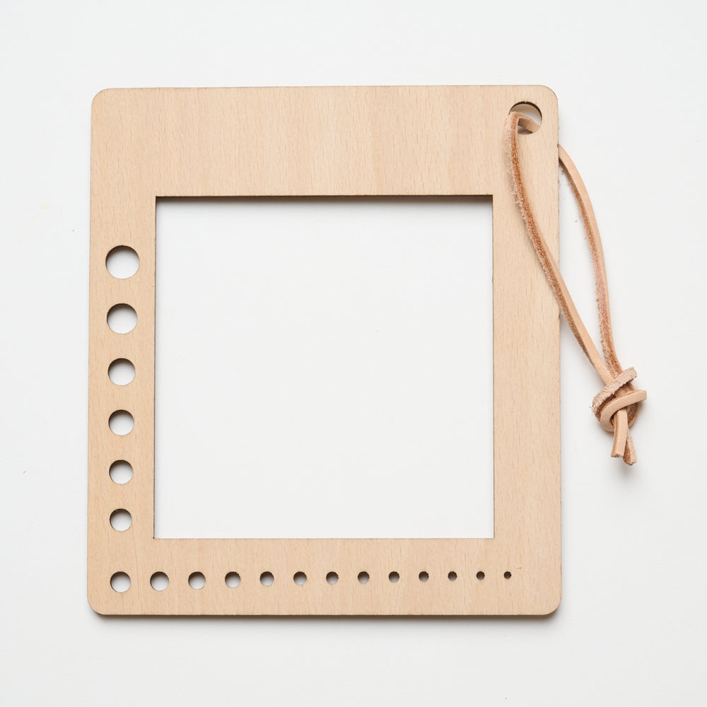 En stickfasthetsmätare från Mayflower Create i storlek large, där du kan mäta både storleken på dina stickor (2–10 mm) och din stickprov. Fönstret i mitten mäter 10 x 10 cm.