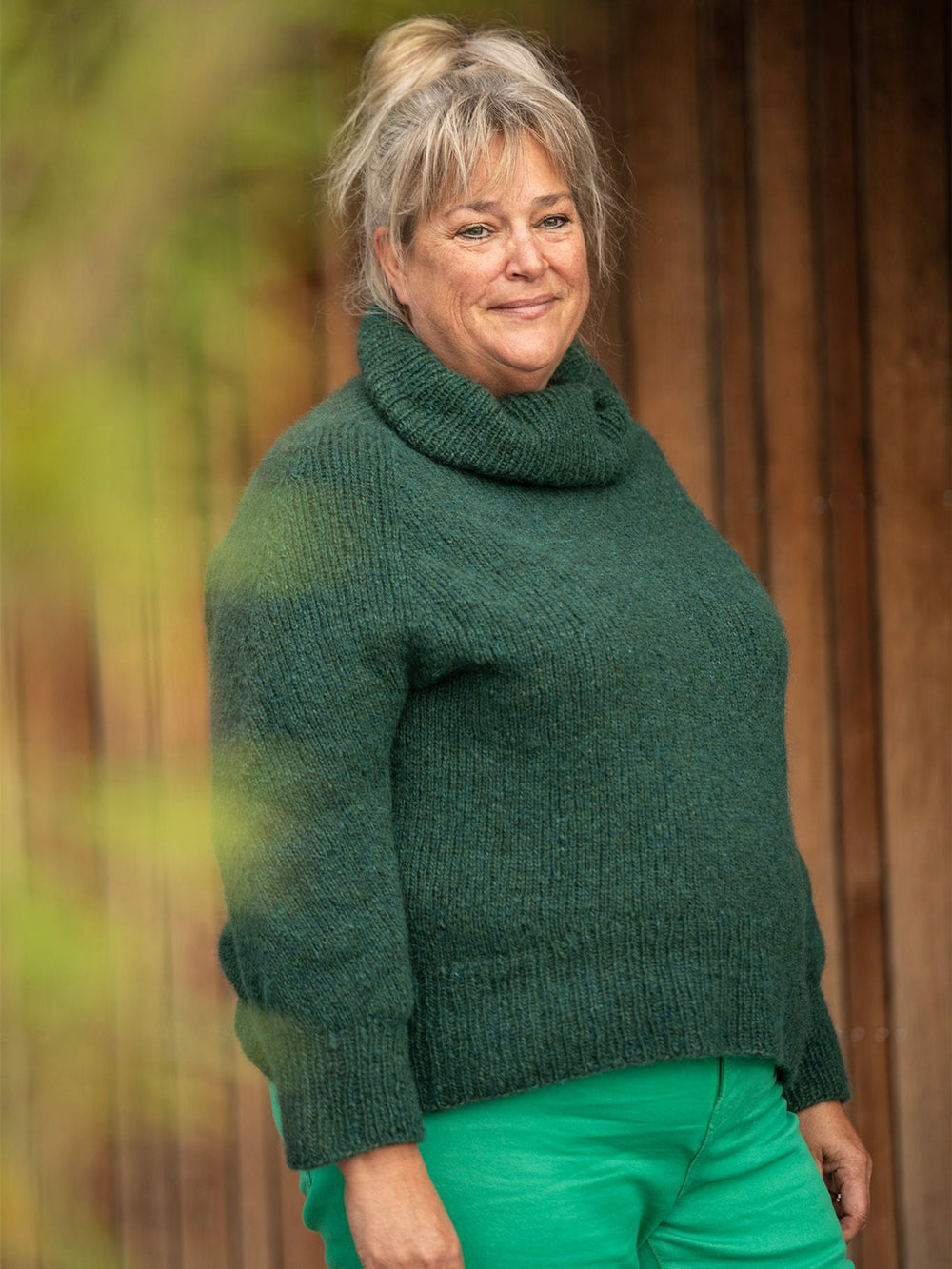 Tröjan stickas uppifrån och ner, och de förkortade varven ger en perfekt passform. Dessutom är den helt monteringsfri – perfekt för dig som vill undvika montering.