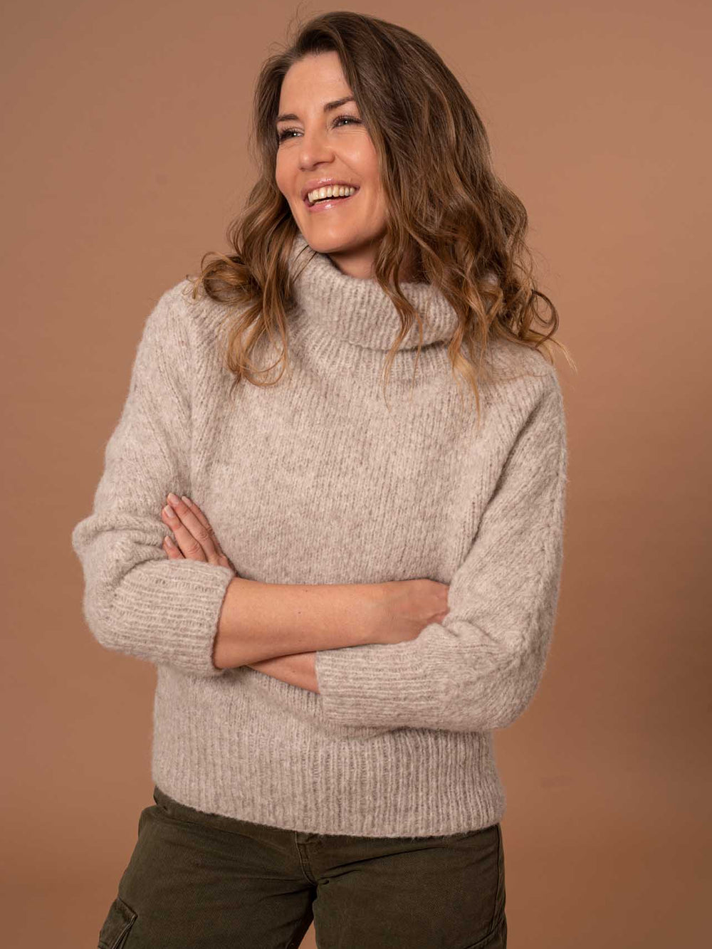 Santiago är spunnet av ull, alpacka och polyamid. Ullen från alpacka och får ger en härligt varm tröja, medan polyamiden bidrar med slitstyrka så att tröjan håller i många år.