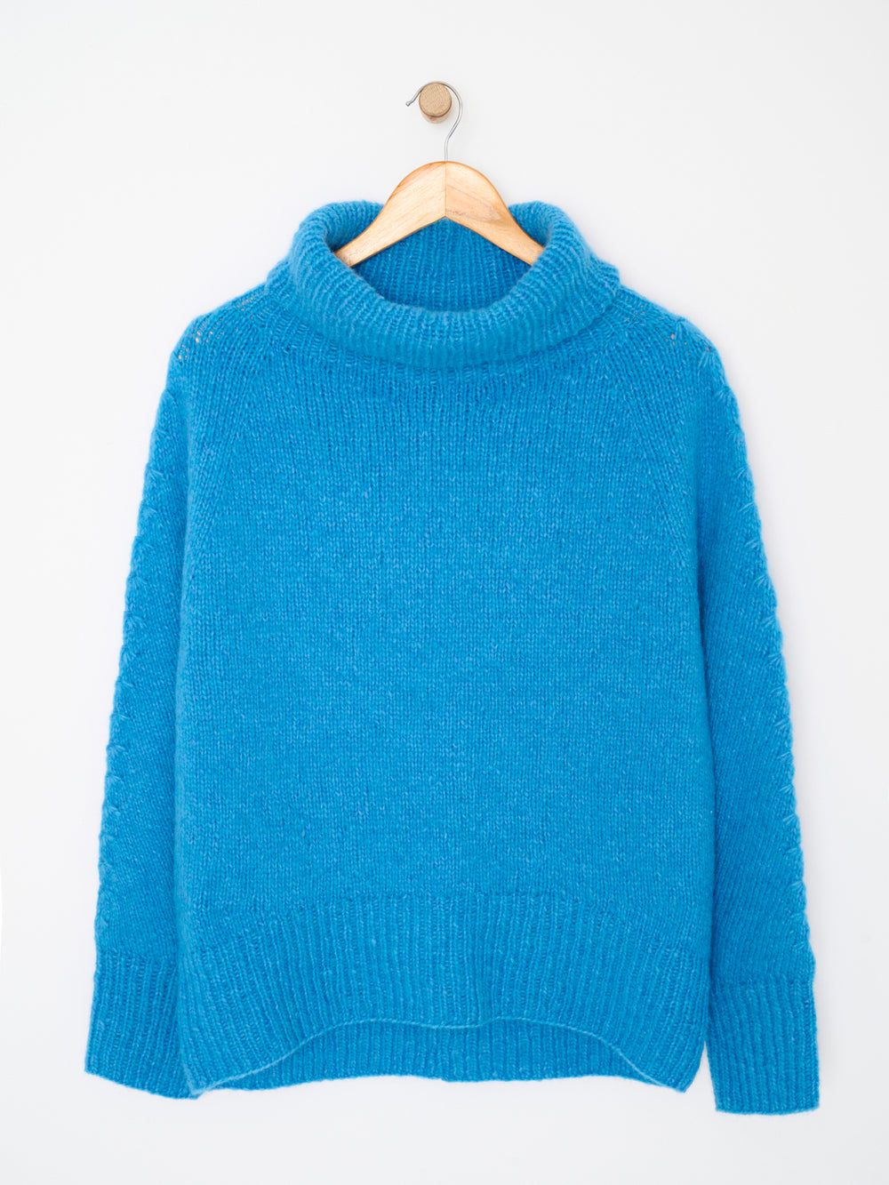 Tröjan stickas uppifrån och ner, och de förkortade varven ger en perfekt passform. Dessutom är den helt monteringsfri – perfekt för dig som vill undvika montering.