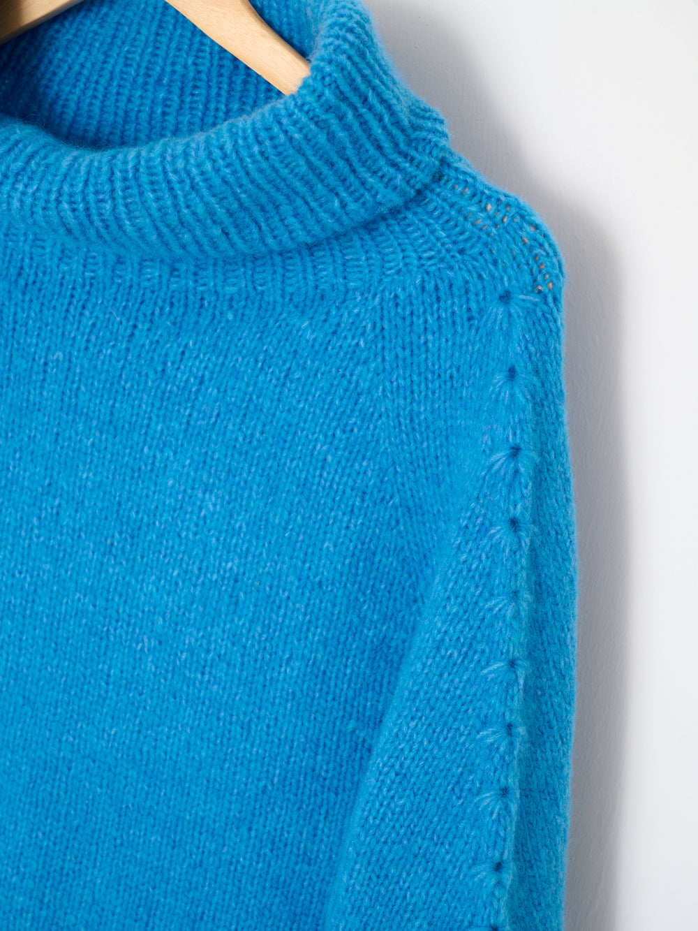 Mayflower WinterStar har en diskret mönsterdetalj på ärmarna, men i övrigt är tröjan enkel och lätt att matcha med andra plagg i garderoben. Förutom det fina mönstret har den en extra detalj i form av längre bakstycke, vilket skapas med hjälp av förkortade varv.