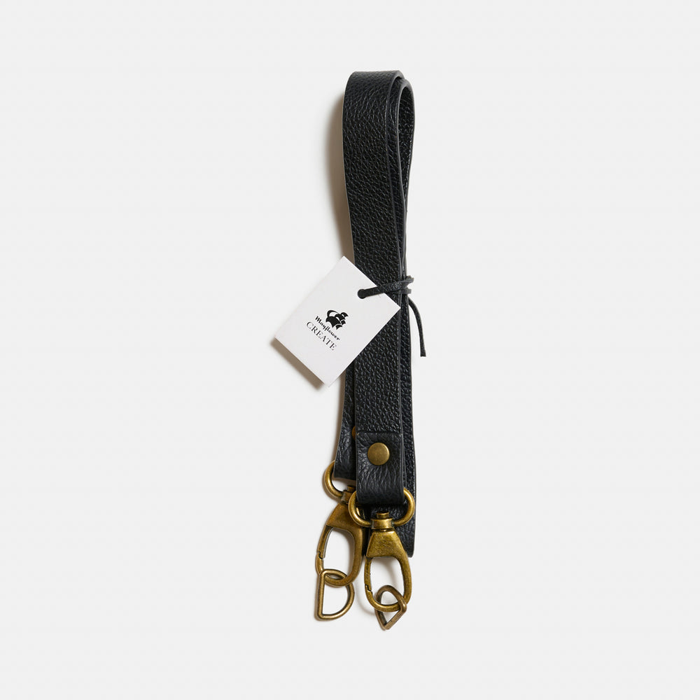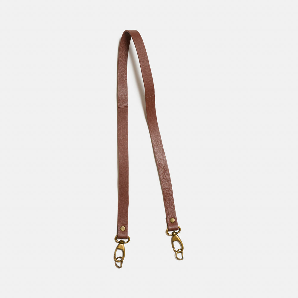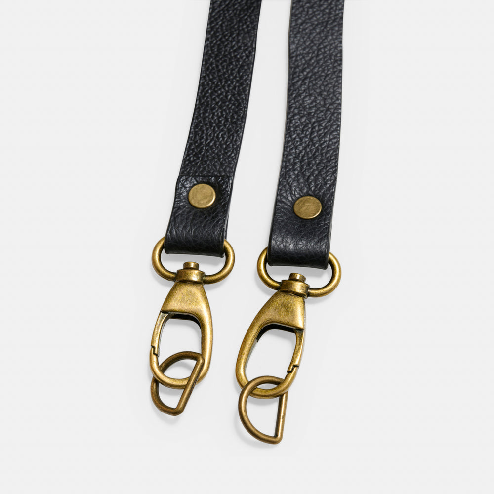 Taskehank, som er håndlavet og produceret i ægte læder med bronzefarvede karabinhager. Karabinhagerne monteres på tasken med D-ringe. Taskehanken er 87 cm lang (inkl. karabinhager), 18 mm bred og har en tykkelse på 2,5-3 mm. Taskehanken fås i enten sort eller brun.