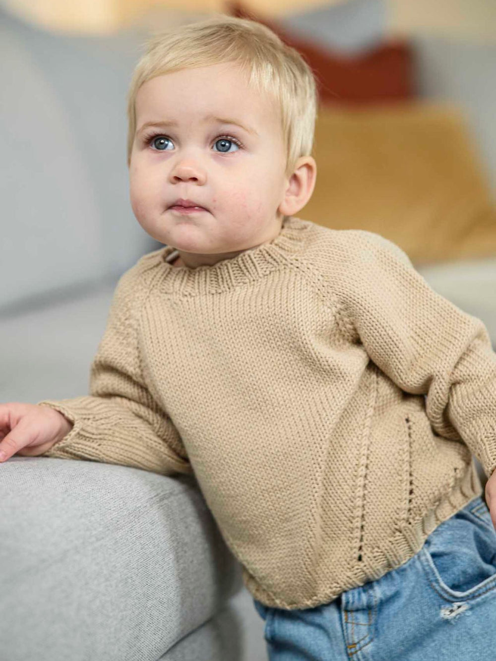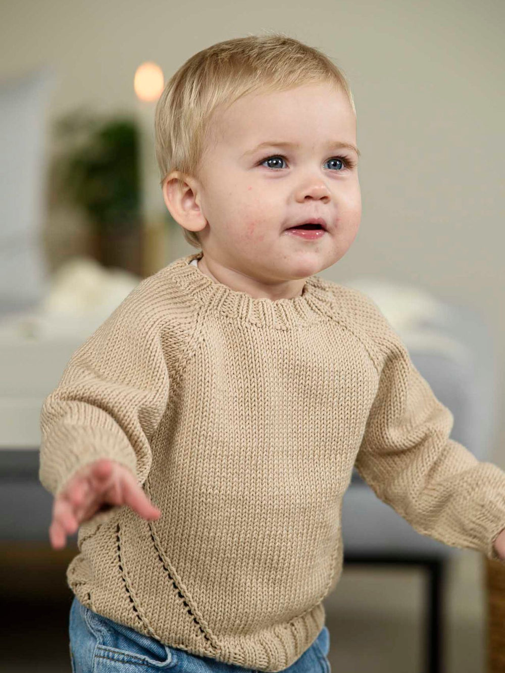 Söt tröja med hålmönster och raglanärmar. Det kan stickas för barn i åldern nyfödd och upp till 4 år.