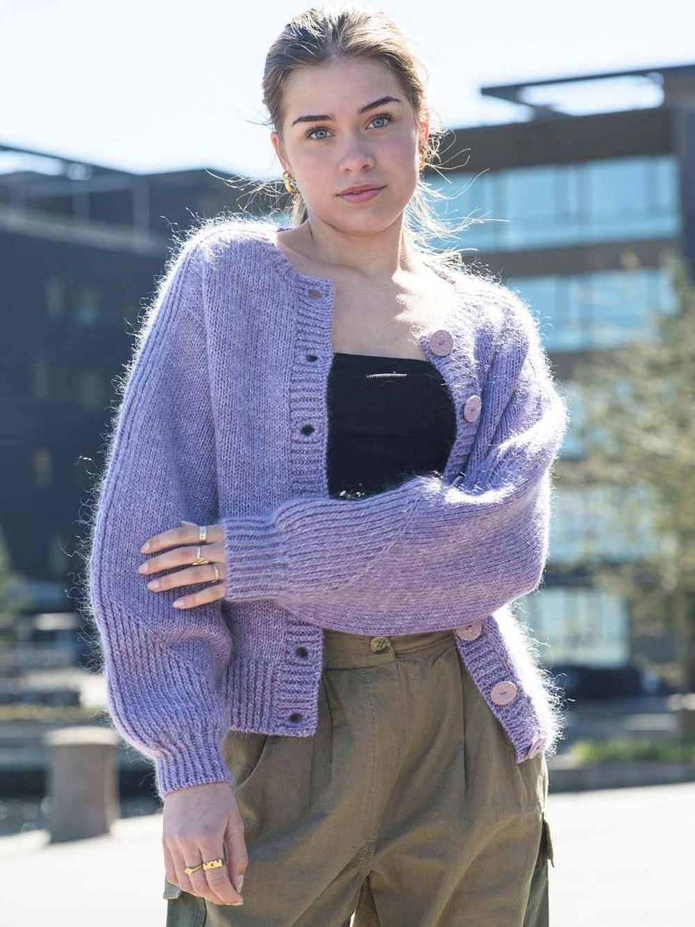 Super Kid Silk tillför det läckra mohair-utseendet. Kombinationen av de två garnfibrerna ger Rebild Cardigan en fantastisk fyllighet, mjukhet och lätt tyngd. Tröjan känns enormt bekväm att bära och kan användas både en kall vinterdag eller som ett alternativ till en vår- eller höstjacka. Ladda ner det gratis mönstret nedan. Lycka till!