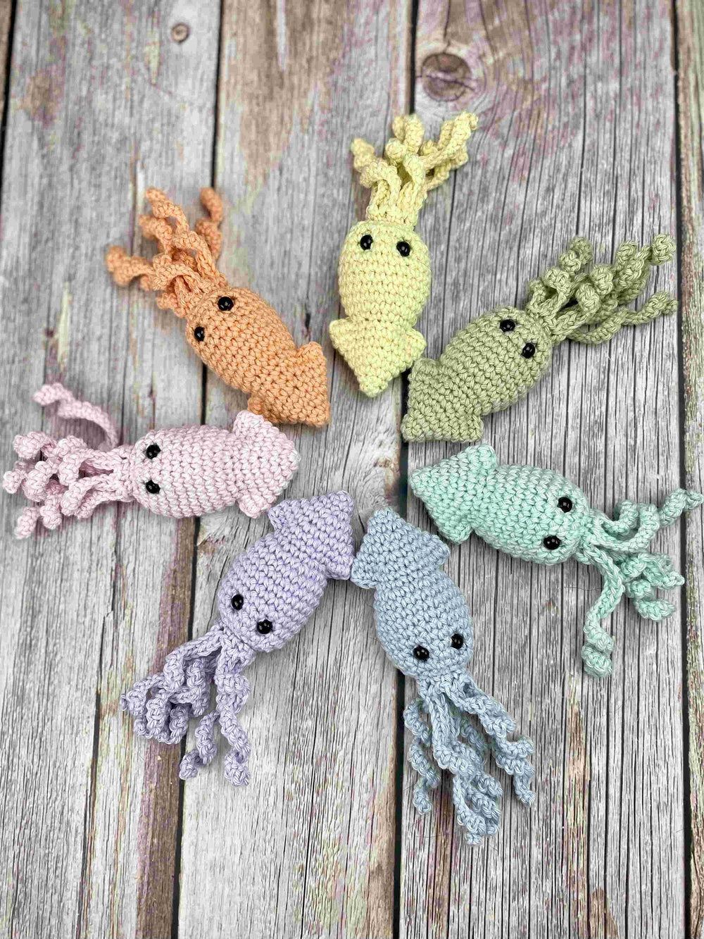 Denna lilla bläckfisk görs helt utan att sy. Allt är virkat i ett.
