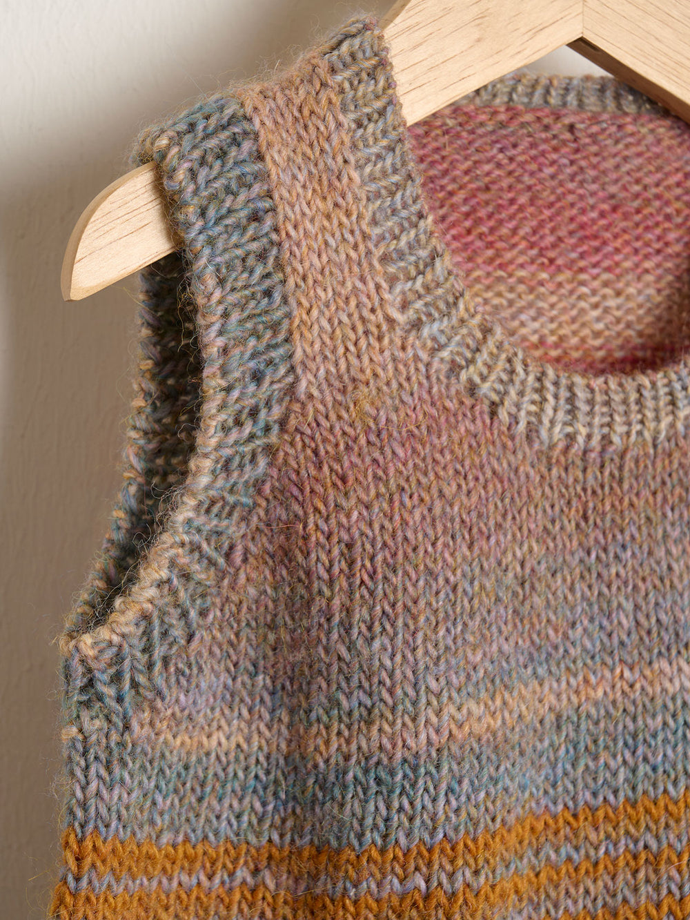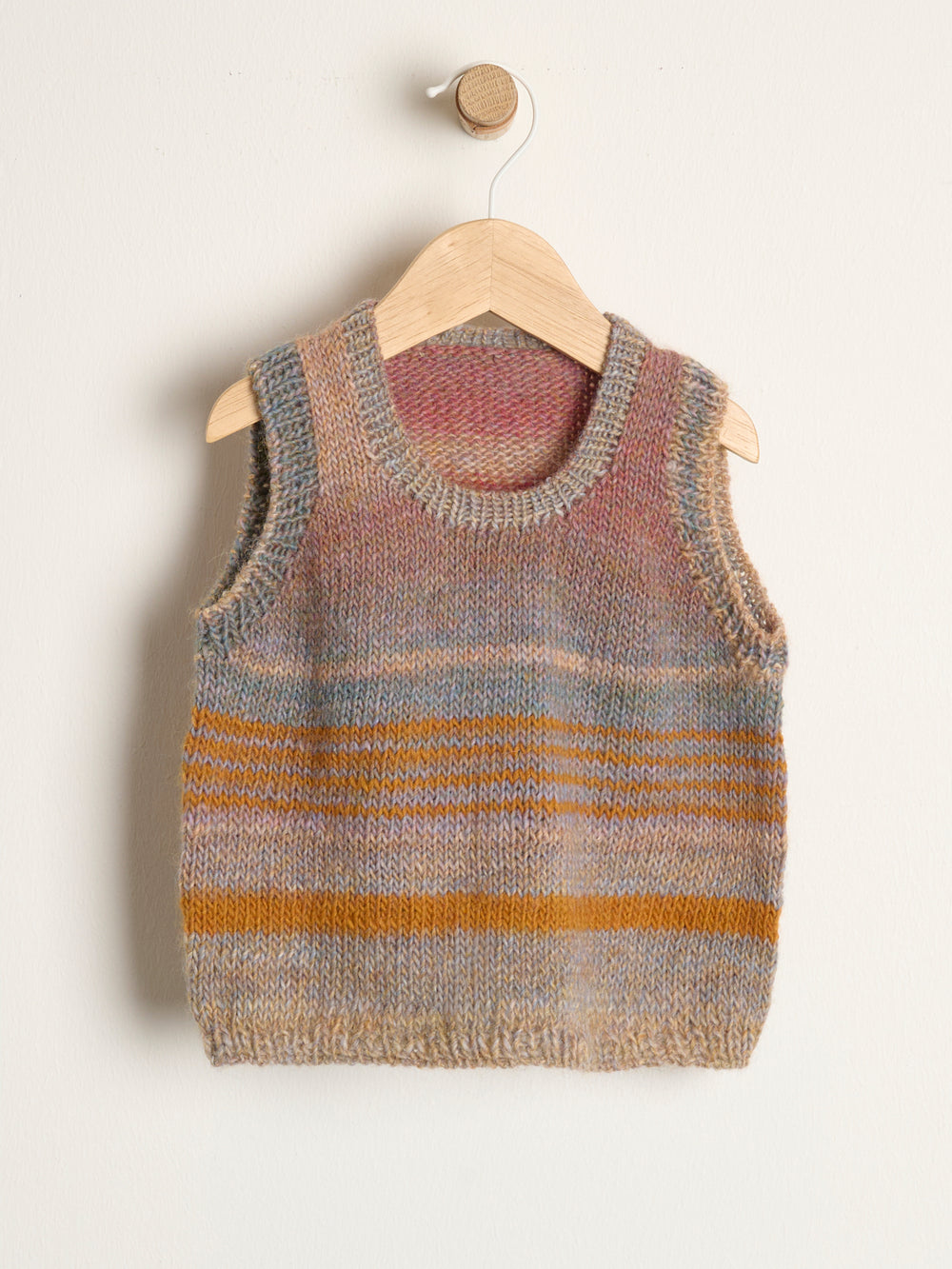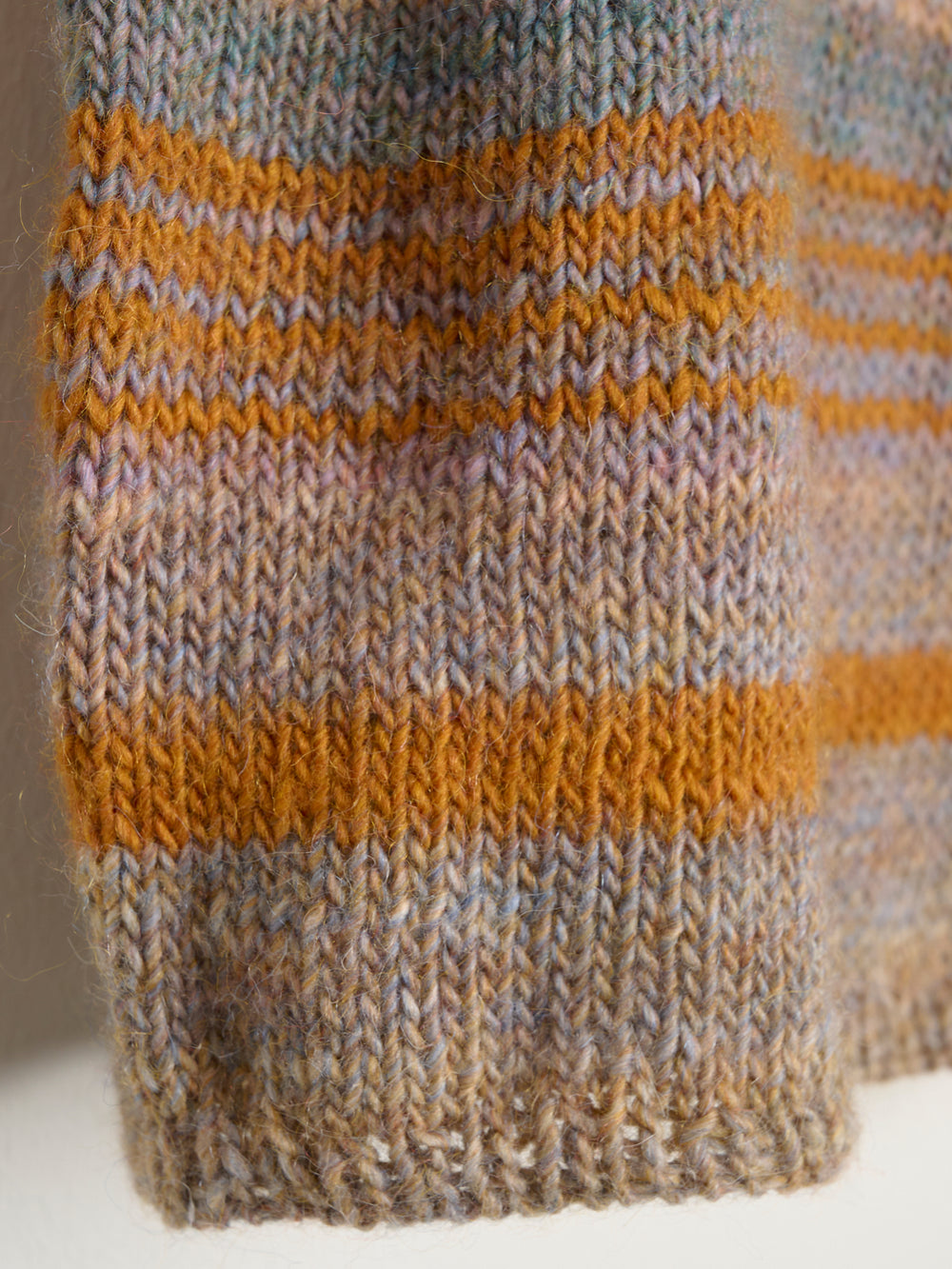 Tröjan stickas med två trådar genom hela arbetet av Mayflower Super Kid Silk, vilket ger ett riktigt lyxigt resultat. Som alternativ till mohairgarnet Super Kid Silk kan du också använda alpakablandningen Mayflower Elba eller Mayflower Premium Cassandra, som är spunnet med bl.a. silke och alpacka.