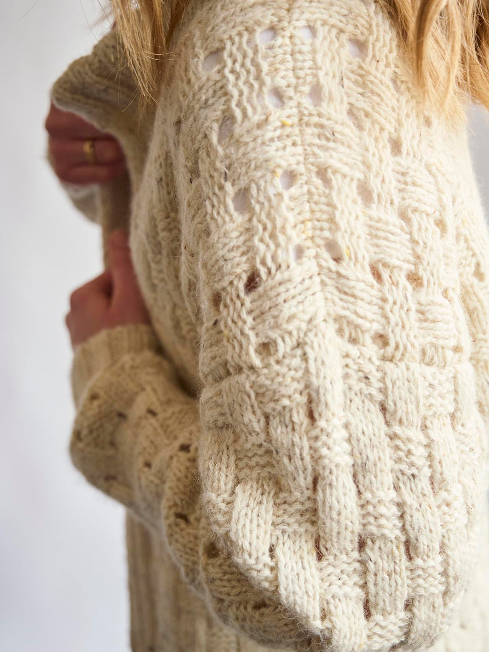 Koftan har en unik garnsammansättning och är stickad med 3 trådar: Mayflower Birmingham, Mayflower York och Mayflower Premium Cassandra.
