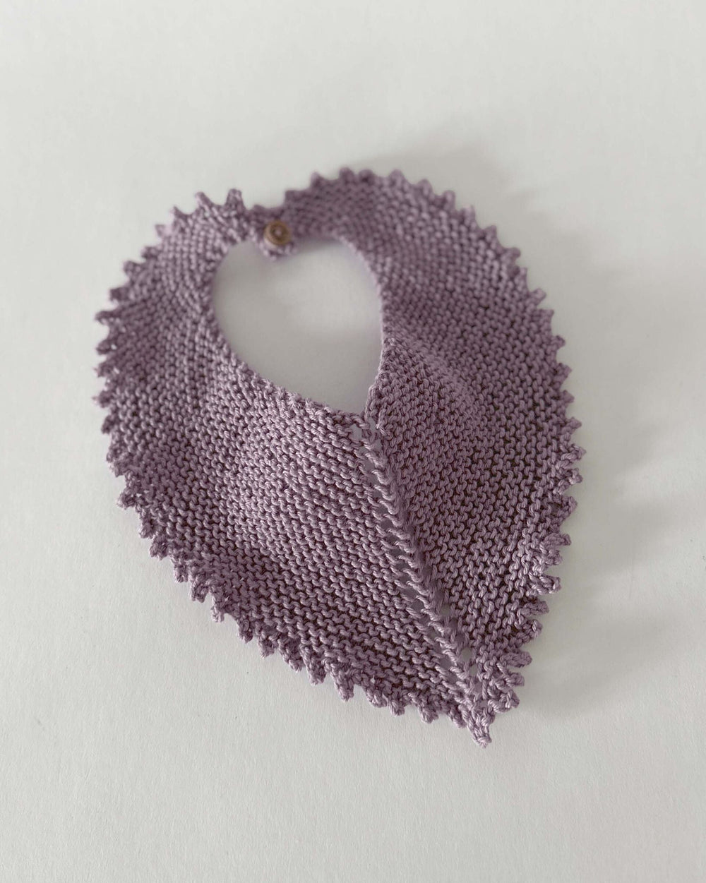 Enkel, stickad haklapp, som avslutas med en fin picot-kant. Haklappen stickas i Mayflower Cotton 8/4, vilket är ett praktiskt garn eftersom det tål tvätt vid även höga temperaturer.