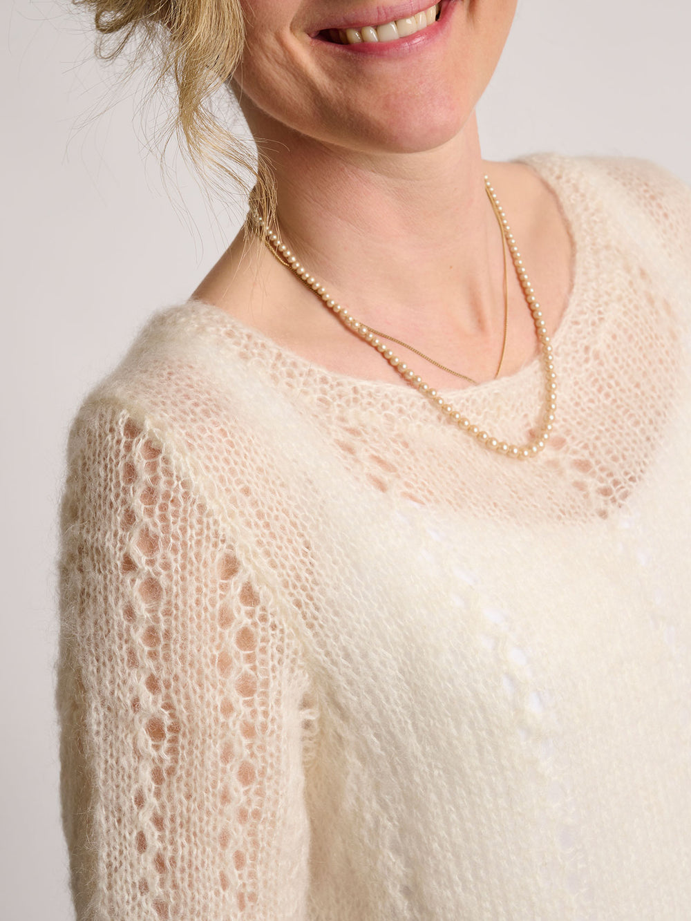 För att sticka en lätt och härlig klänning behöver man först och främst välja rätt garn och vi har därför valt Mayflower Super Kid Silk. Garnet spinns på 76% mohair och 24% siden och är extremt lätt och fluffigt - klänningen blir därför luftig och får ett trevligt och naturligt fall.