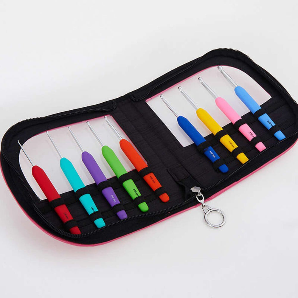 Praktiskt virknålsset i 9 olika storlekar – med färgkodade handtag